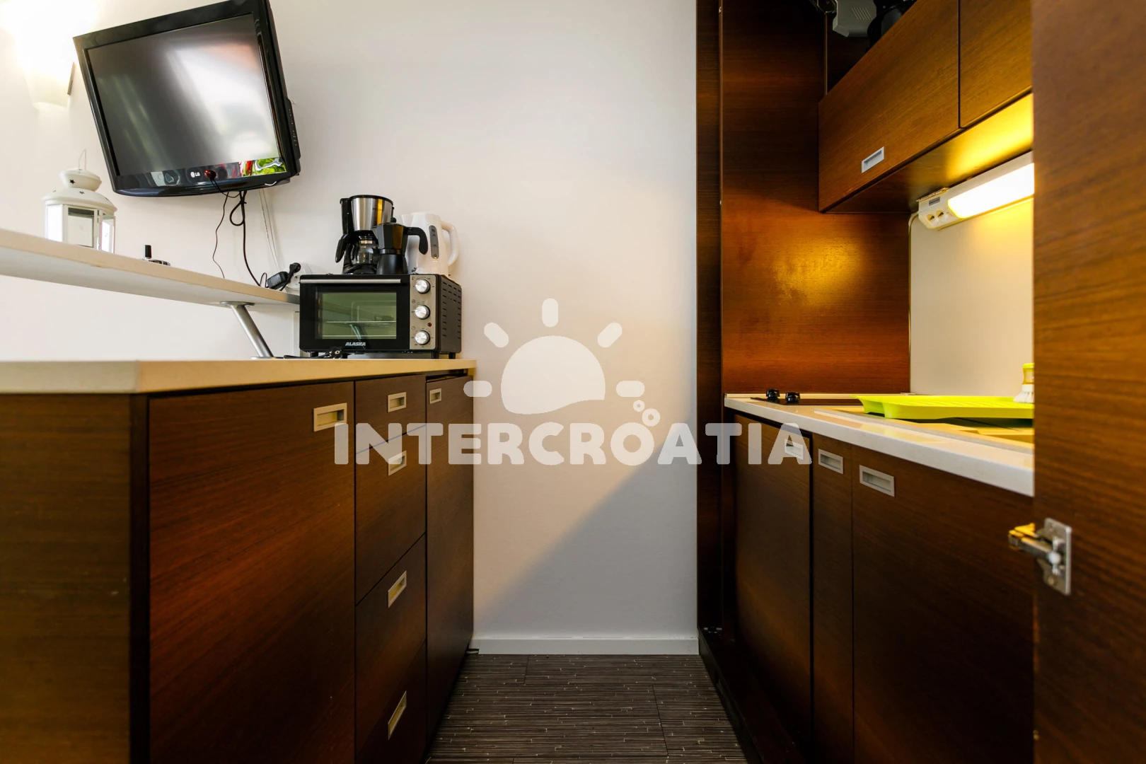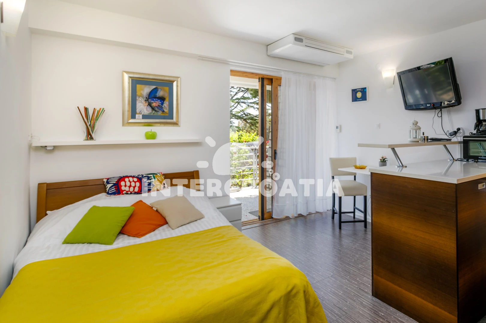 Apartmán typu studio (18 m2) s terasou. Nachází se v přízemí objektu. Kuchyňská linka je vybavena varnou deskou, kávovarem, toustovačem, nádobím, lednicí, mrazákem. K dispozici televize, žehlička.…