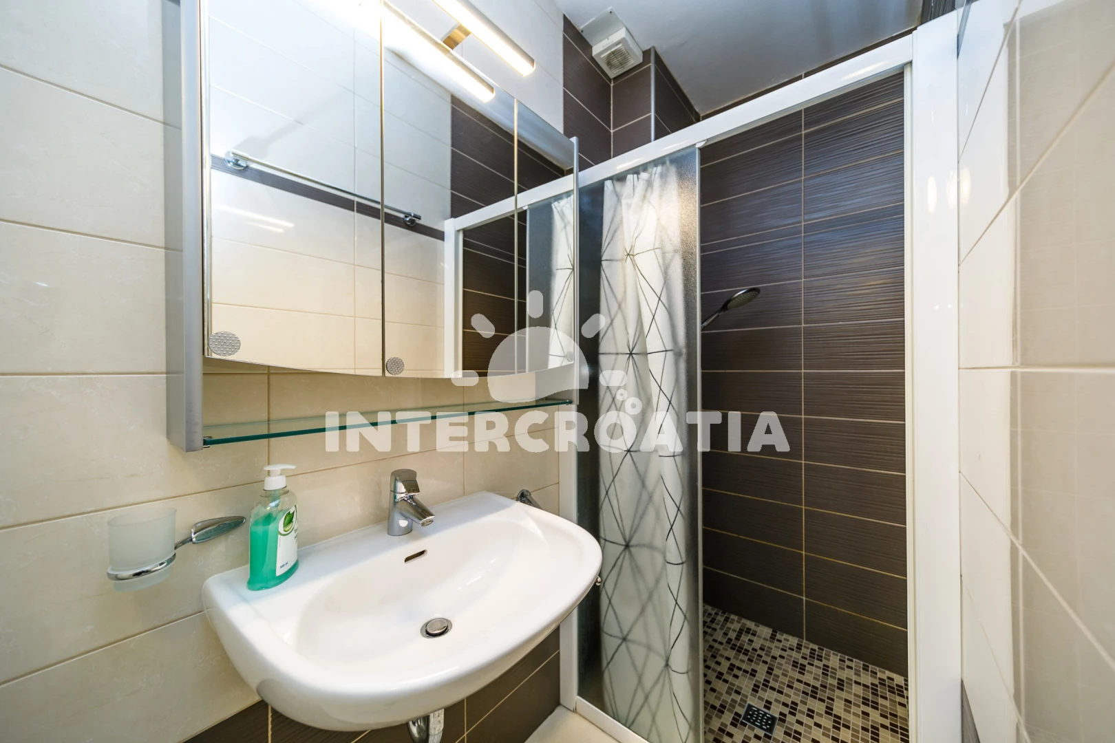 Vzdálenosti: Moře 220 m, pláž 250 m (oblázková a betonové desky), centrum 200 m, pošta 200 m, bar 200 m, restaurace 200 m, supermarket 250 m, lékárna 250 m, směnárna 250 m, banka 250 m, kotviště pro čluny 250 m, ambulance 300 m, půjčovna kol 400 m, tenisové kurty 600 m, trajekt (Valbiska (Krk)) 12 km, letiště (Rijeka) 25 km,