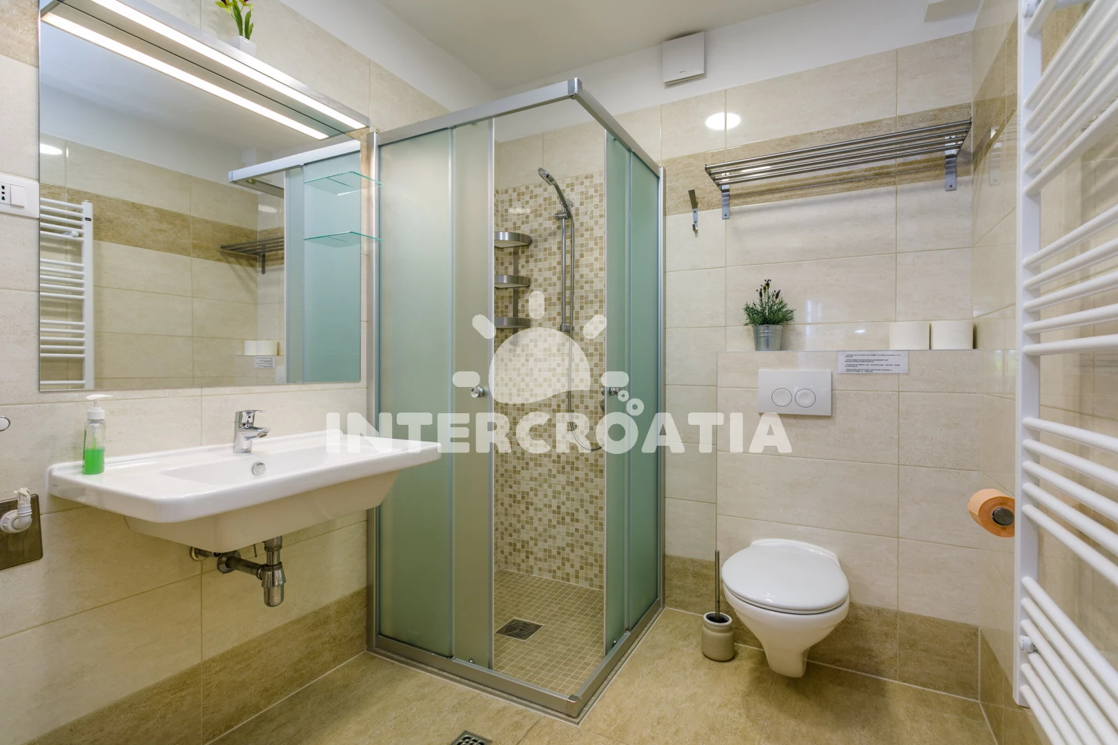 Apartmán se nachází 250 m od moře a pláže. Pláž je oblázková a betonové desky. U objektu je k dispozici společná zahrada s posezením a grilem. Parkování je před domem.