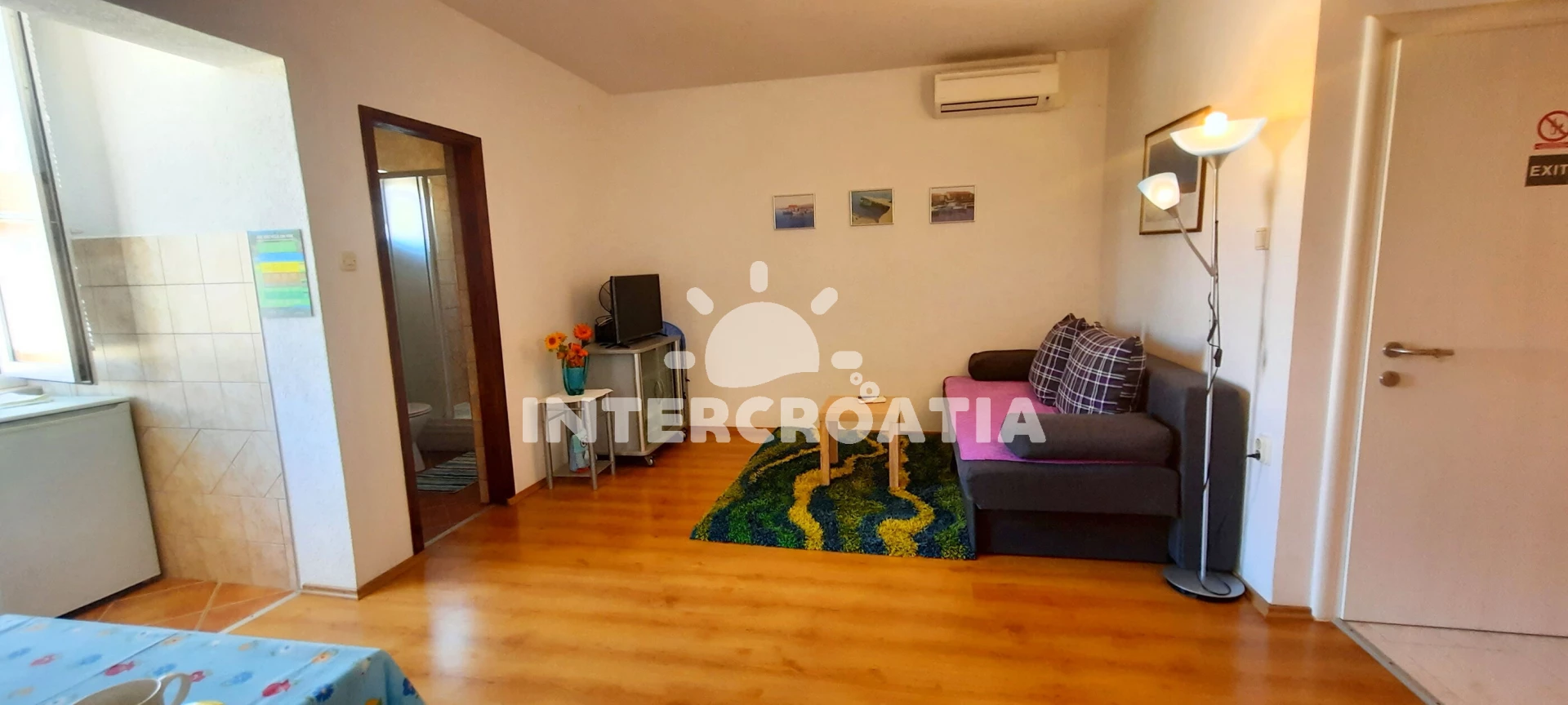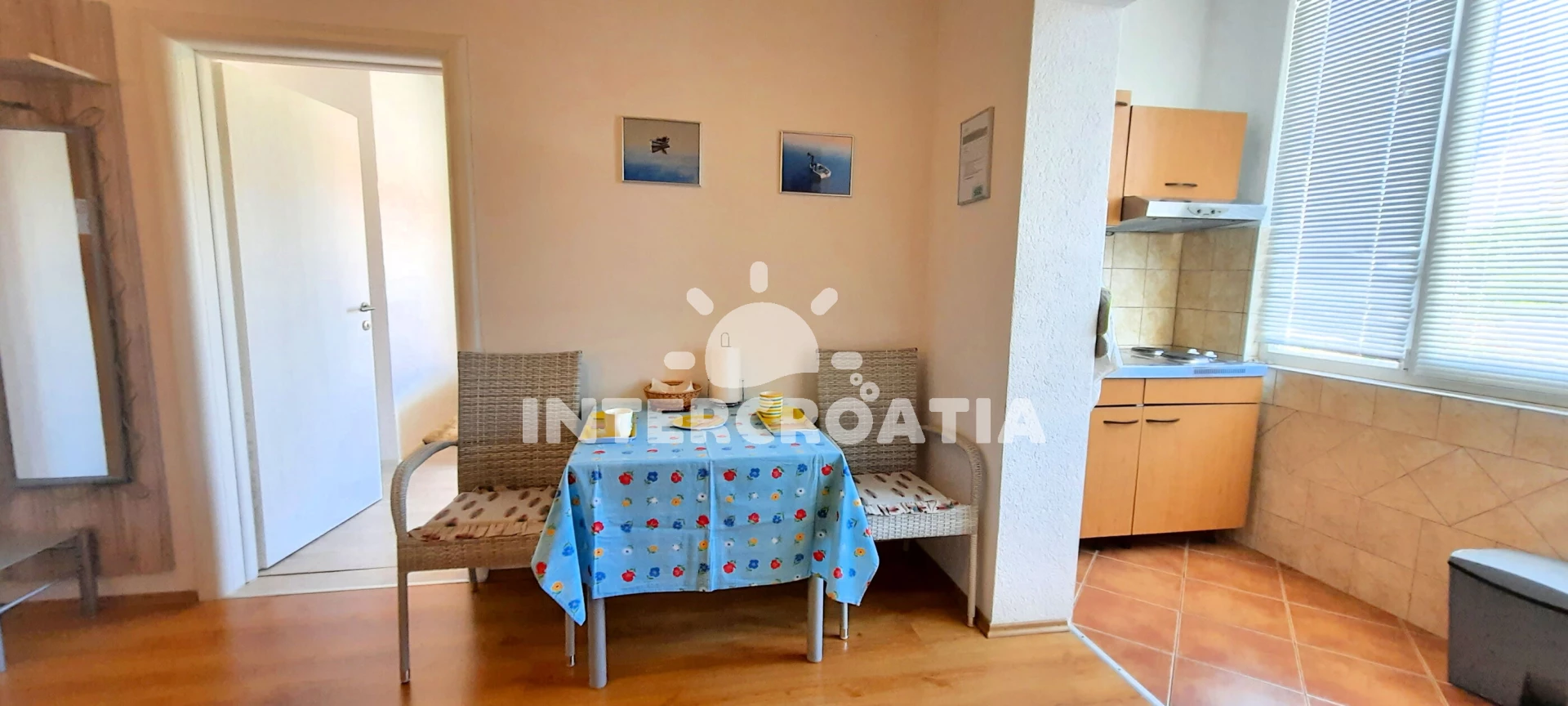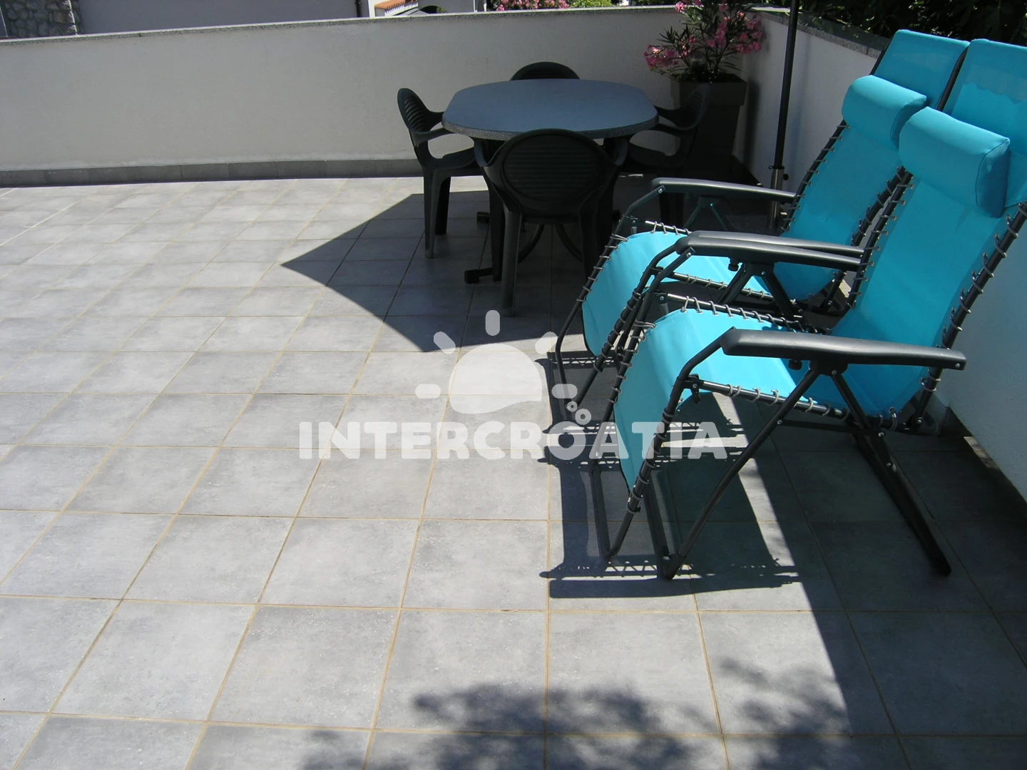 Vzdálenosti: Moře 470 m, pláž 550 m (oblázková a betonové desky), restaurace 300 m, směnárna 350 m, supermarket 350 m, veřejná doprava 350 m, centrum 350 m, čerpací stanice 400 m, bar 500 m, pošta 700 m, banka 700 m, lékárna 700 m, ambulance 1 km, trajekt (Valbiska (Krk)) 12 km, letiště (Rijeka) 25 km,