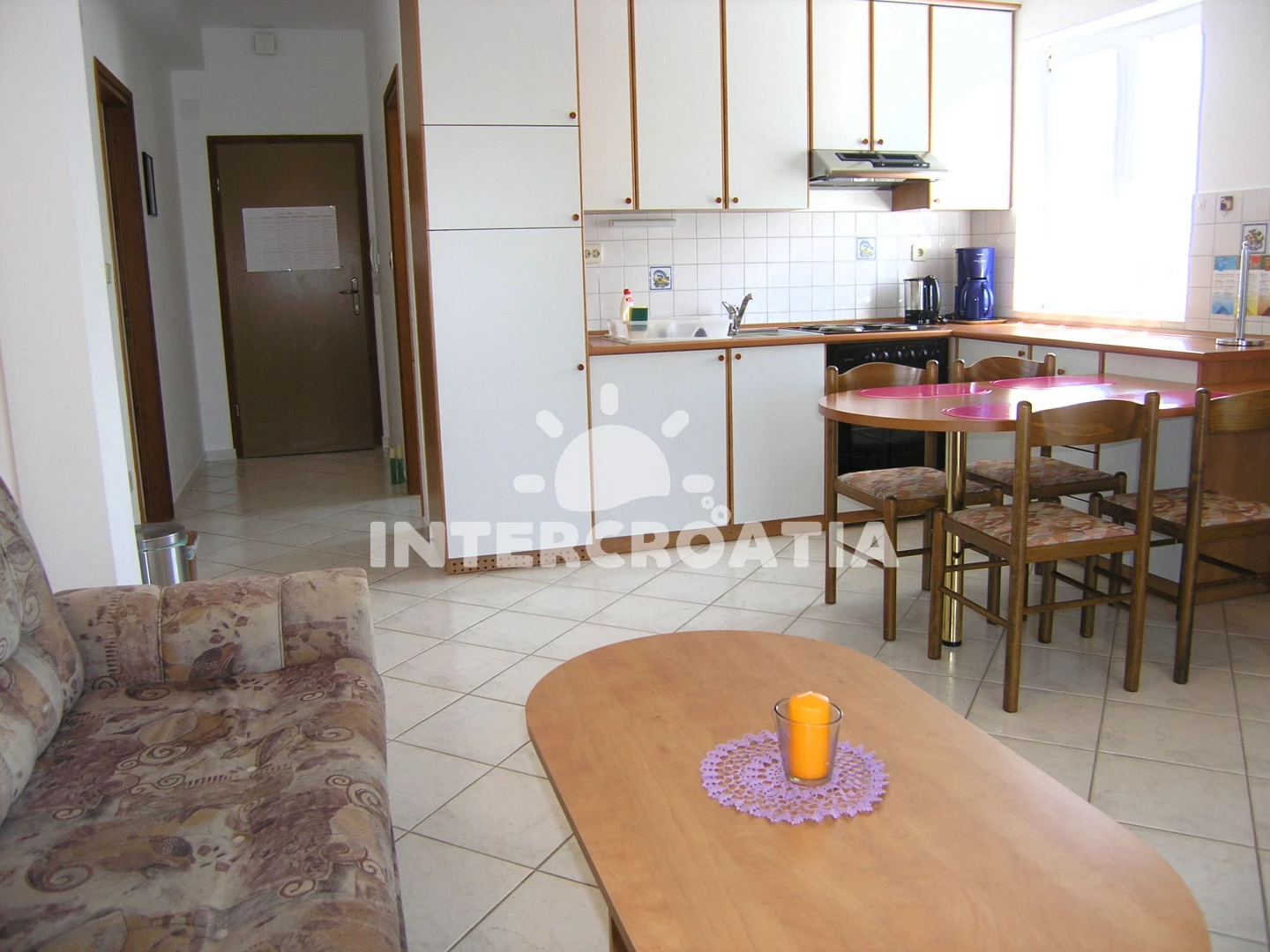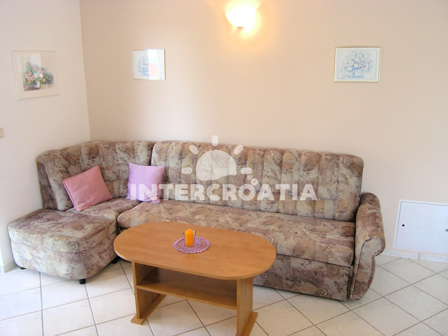 Apartmán se nachází 500 m od moře a pláže. Pláž je oblázková a betonové desky. U objektu je k dispozici společná zahrada s posezením a grilem. Parkování je před domem.