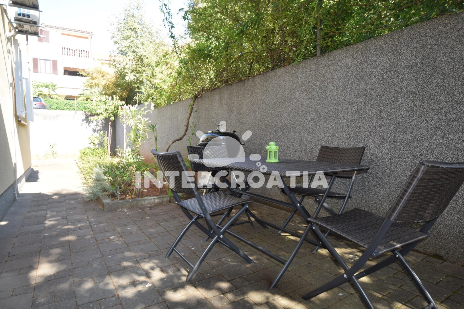 Apartmán se nachází 600 m od moře a pláže. Pláž je oblázková a betonové desky. U objektu je k dispozici společná zahrada s posezením a grilem. Parkování je před domem.