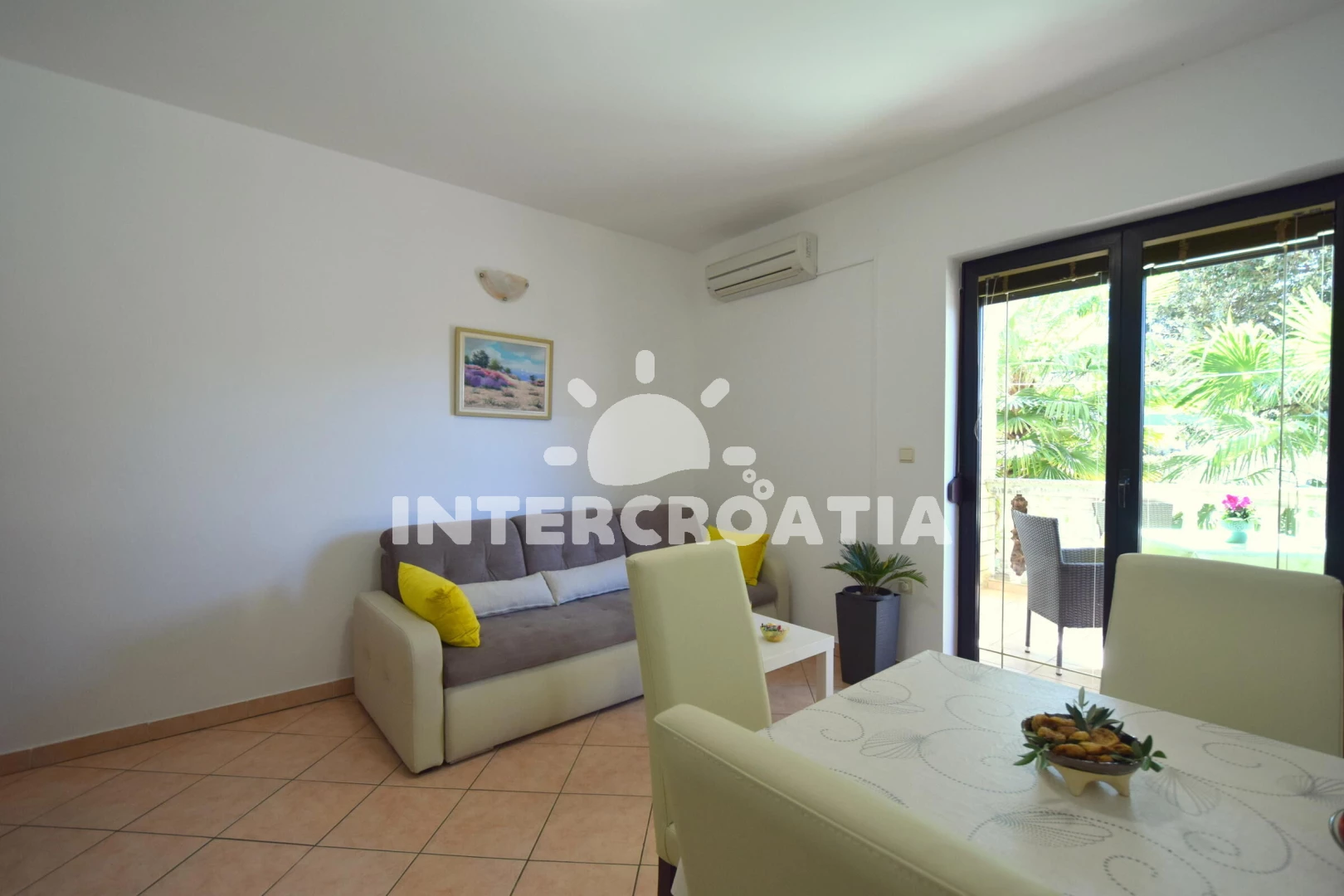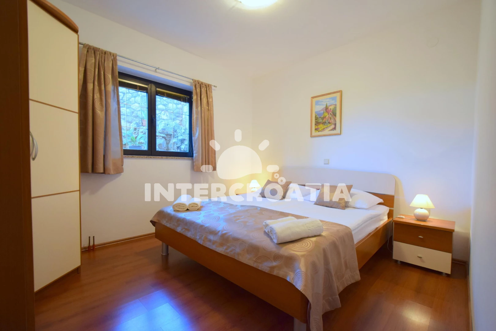 Vzdálenosti: Moře 200 m, pláž 300 m (oblázková a betonové desky), supermarket 100 m, směnárna 100 m, centrum 100 m, půjčovna kol 100 m, kotviště pro čluny 200 m, restaurace 300 m, bar 300 m, lékárna 400 m, půjčovna motorových člunů 400 m, čerpací stanice 400 m, pošta 500 m, banka 500 m, diskotéka 500 m, ambulance 500 m, potápění 700 m, trajekt (Valbiska (Krk)) 10 km, letiště 14 km,