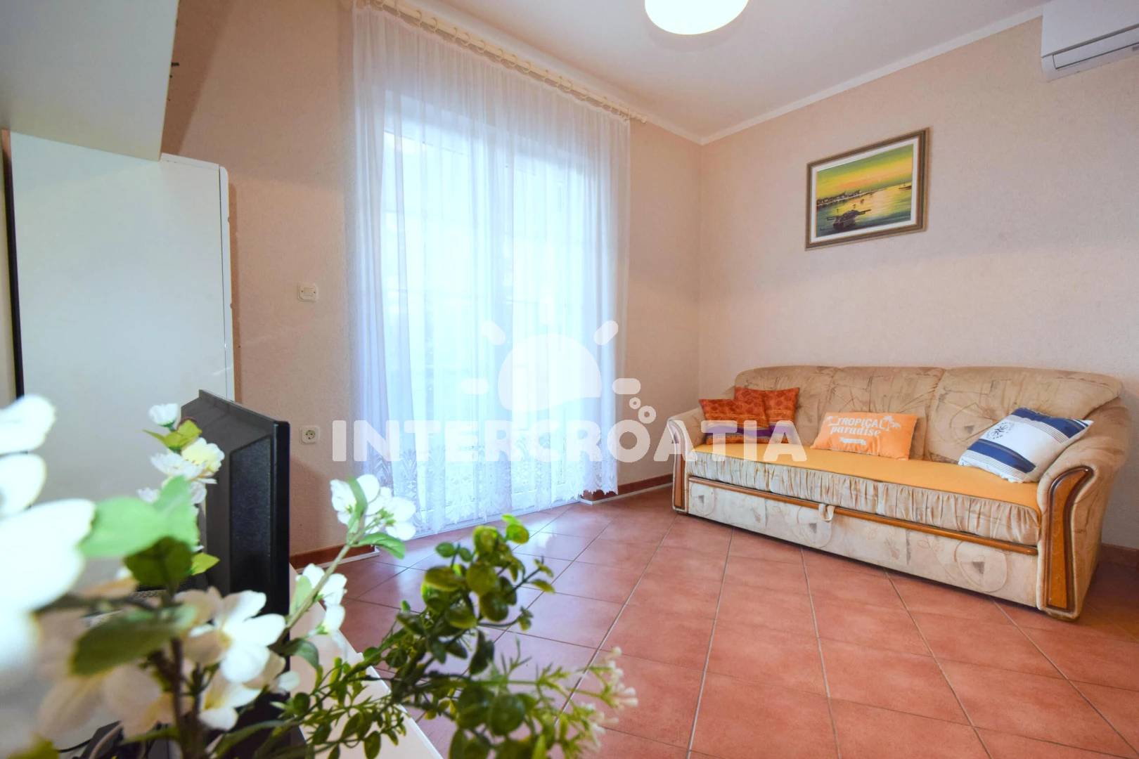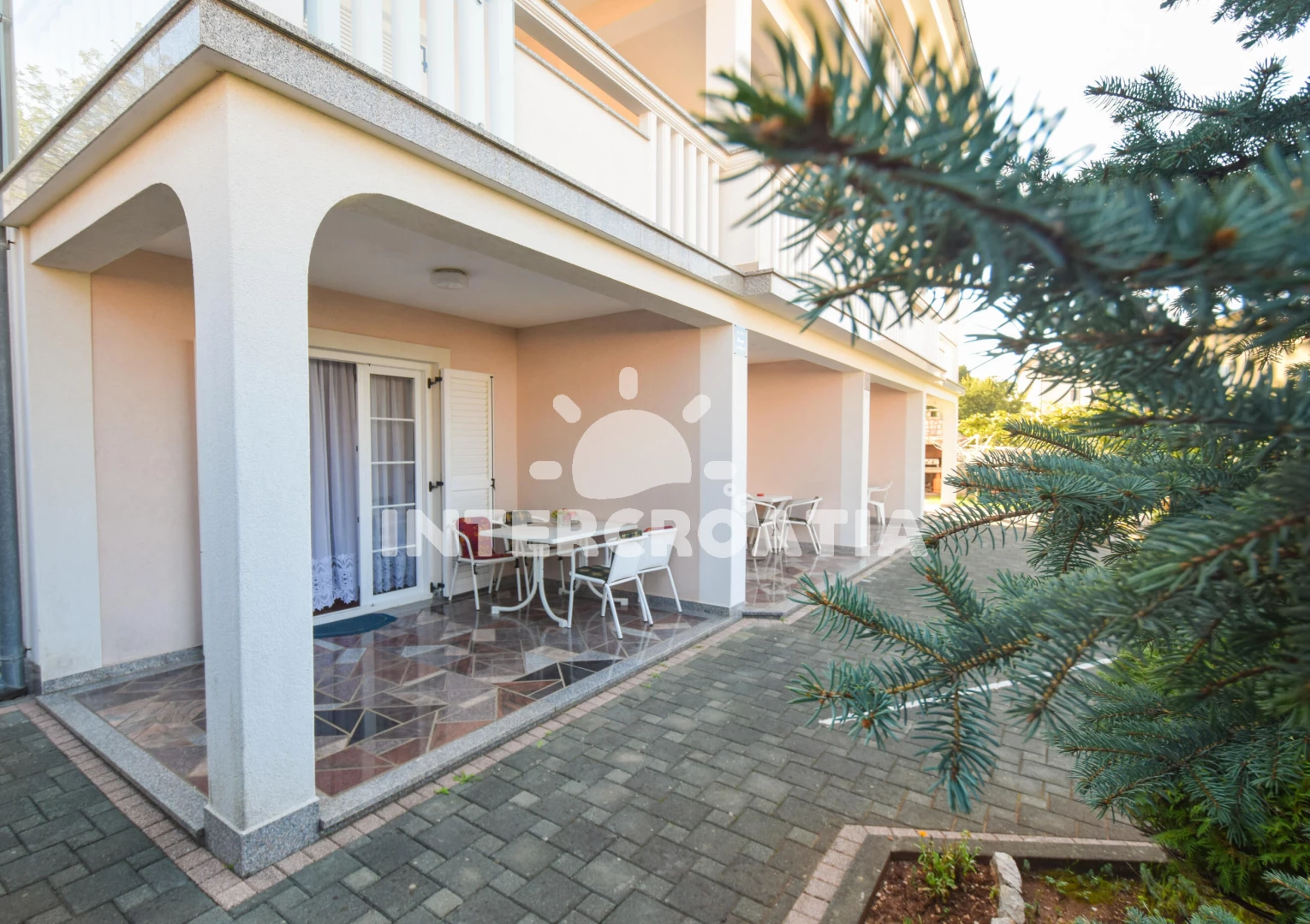 Vzdálenosti: Moře 800 m, pláž 800 m (oblázková a betonové desky), veřejná doprava 500 m, restaurace 500 m, supermarket 500 m, bar 600 m, centrum 700 m, směnárna 700 m, lékárna 800 m, ambulance 800 m, banka 800 m, muzeum 800 m, diskotéka 800 m, půjčovna kol 800 m, půjčovna motorových člunů 800 m, pošta 800 m, čerpací stanice 800 m, trajekt (Valbiska (Krk)) 12 km, letiště (Rijeka) 12 km,