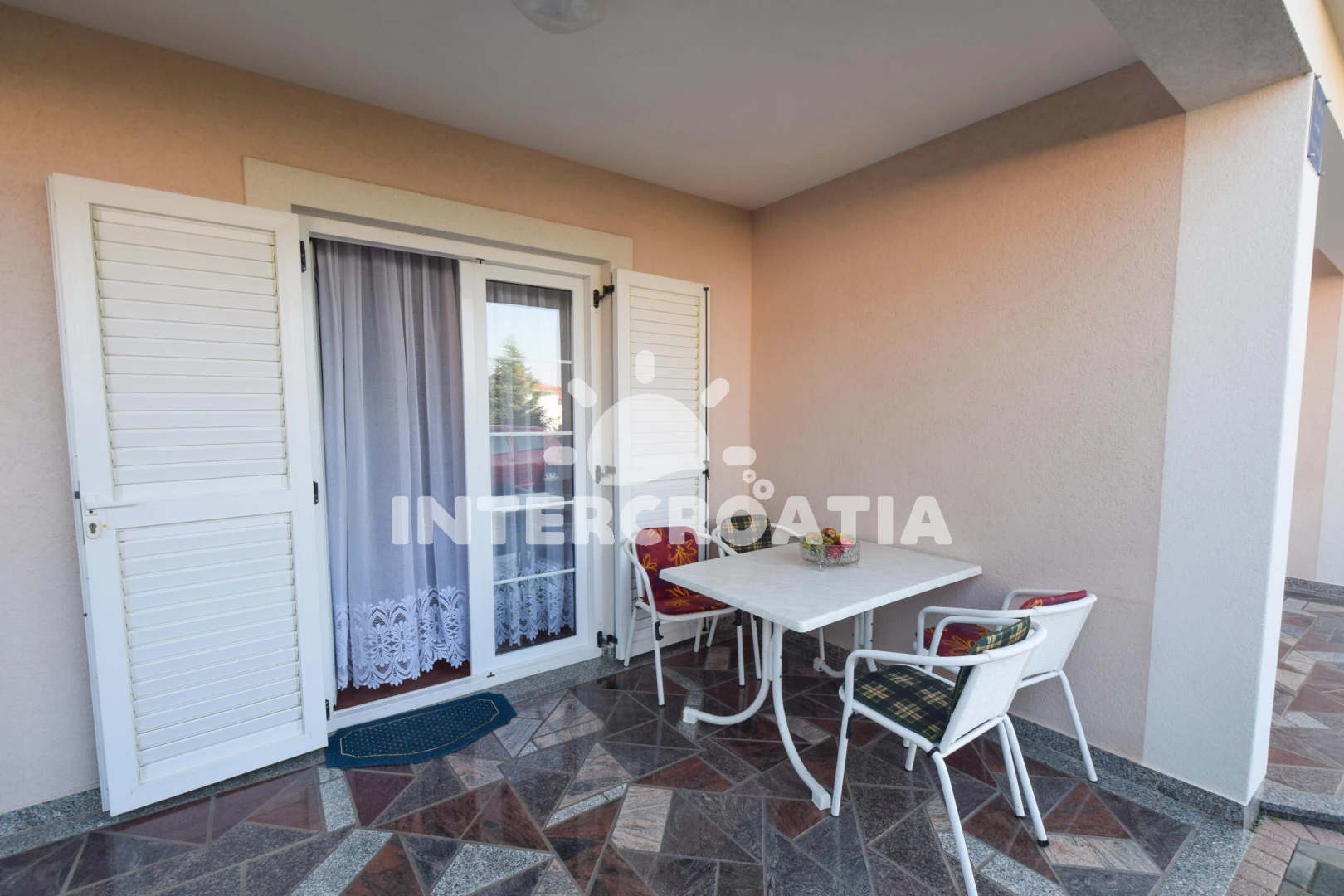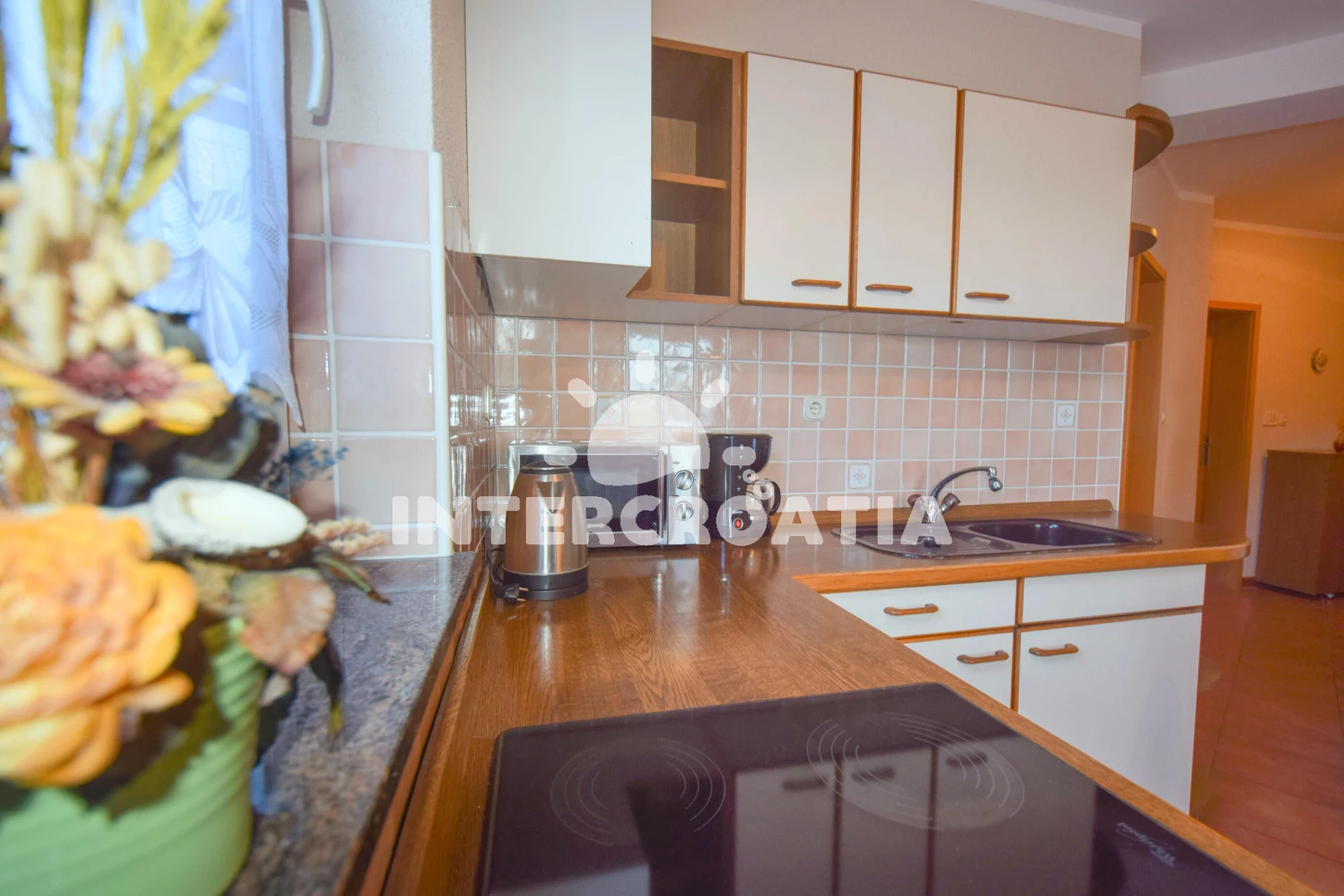 Apartmán se nachází 800 m od moře a pláže. Pláž je oblázková a betonové desky. U objektu je k dispozici společná zahrada s posezením a grilem. Parkování je před domem.