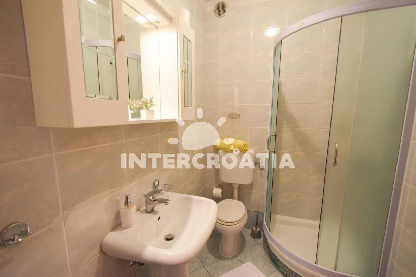 Apartmán se nachází 800 m od moře a pláže. Pláž je oblázková a betonové desky. U objektu je k dispozici společná zahrada s posezením a grilem. Parkování je před domem.