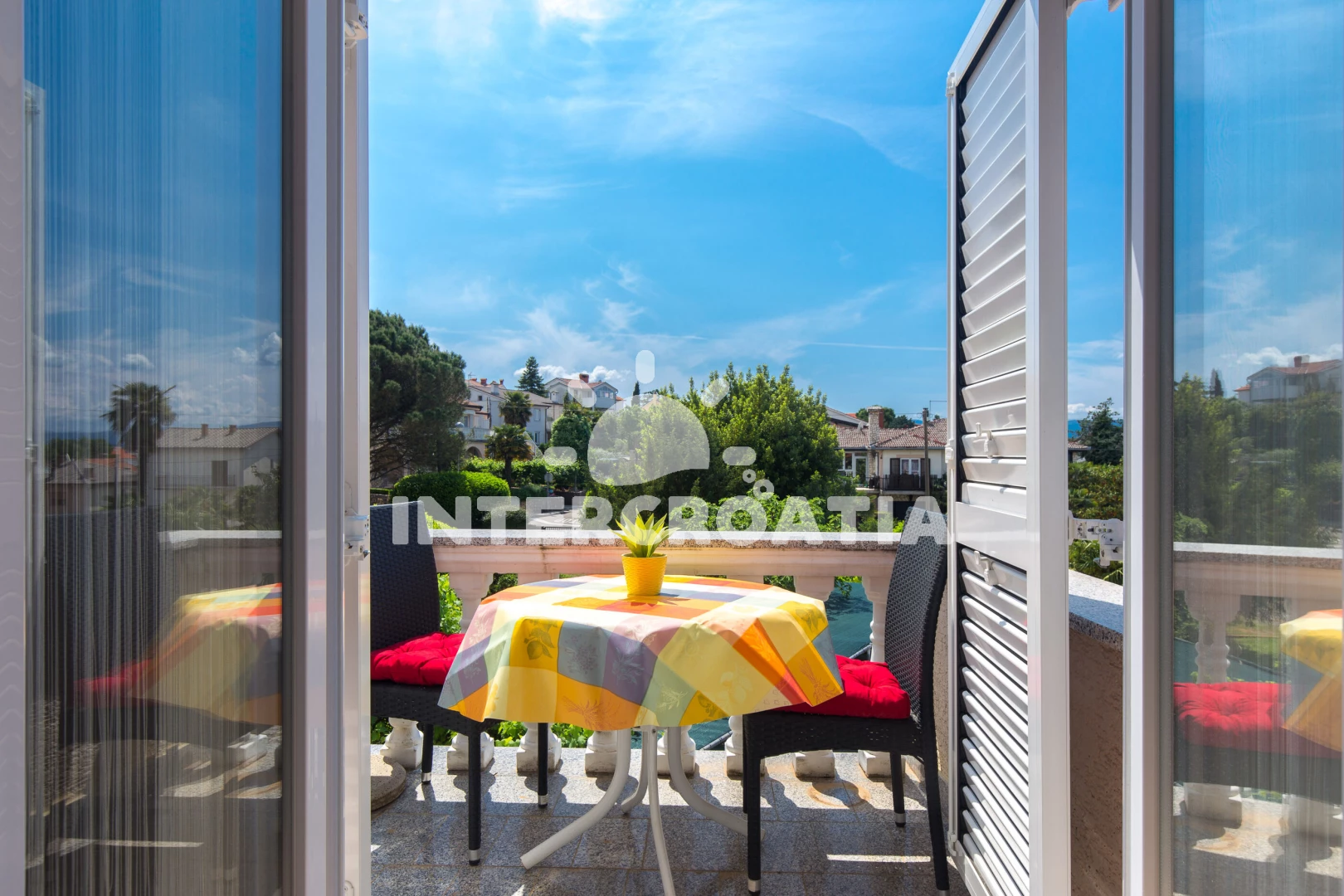 Vzdálenosti: Moře 300 m, pláž 500 m (skalnatá, oblázková a betonové desky), veřejná doprava 300 m, centrum 300 m, čerpací stanice 300 m, směnárna 300 m, restaurace 300 m, bar 300 m, supermarket 300 m, banka 350 m, pošta 400 m, lékárna 400 m, ambulance 400 m, kotviště pro čluny 400 m, půjčovna kol 400 m, půjčovna motorových člunů 500 m, potápění 600 m, diskotéka 1,5 km, trajekt (Valbiska (Krk)) 6 km, letiště 14 km,
