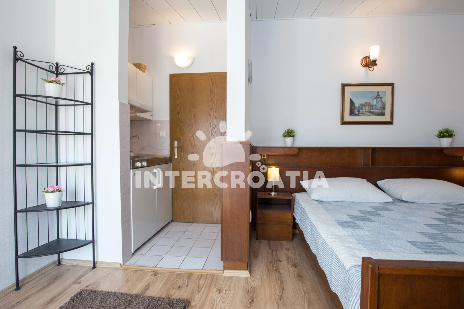 Apartmán (20 m2) s balkonem. Nachází se v 1. patře objektu. Kuchyňská linka je vybavena varnou deskou, kávovarem, troubou, nádobím, lednicí. K dispozici dvoulůžko, televize se satelitním programem. Koupelna se sprchovým koutem, umyvadlem, WC.