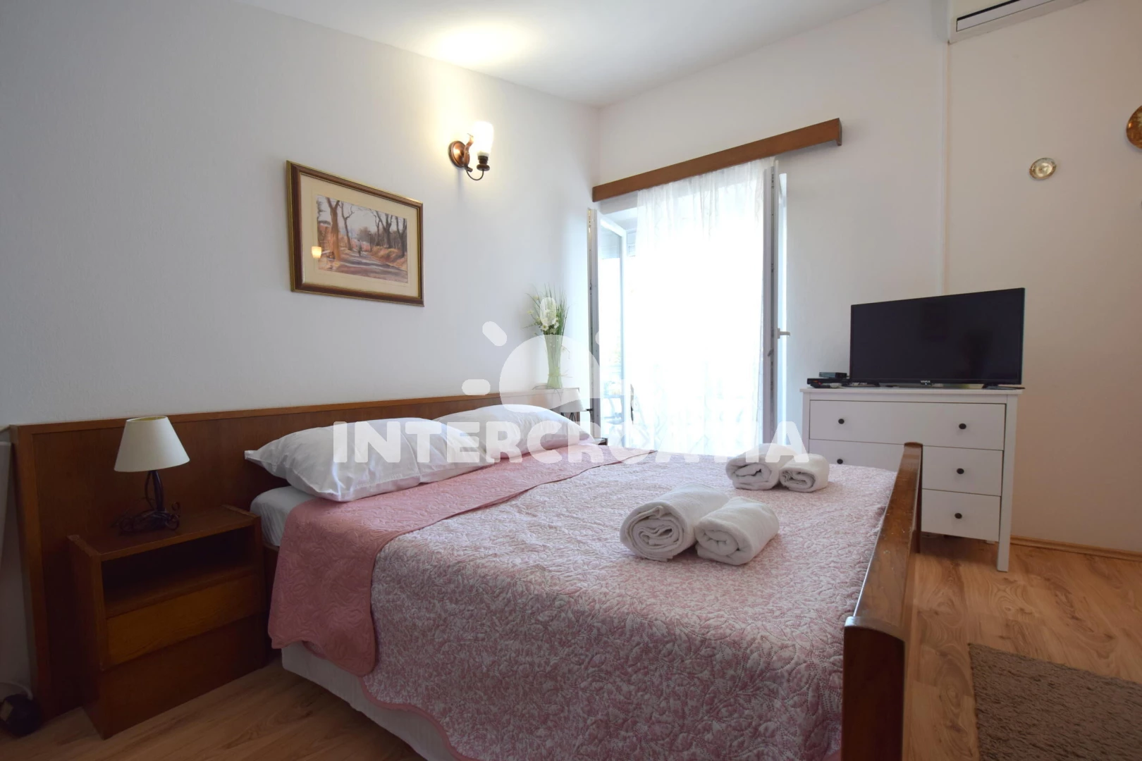 Apartmán se nachází 500 m od moře a pláže. Pláž je skalnatá, oblázková a betonové desky. Apartmán disponuje bazénem s lehátky pro ubytované hosty. U objektu je k dispozici společná zahrada s posezením a grilem. Parkování je před domem.