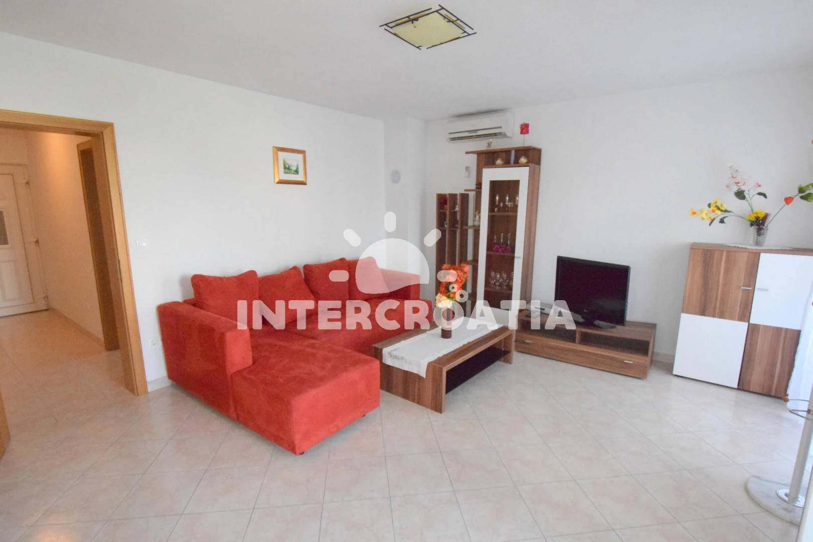 Apartmán (80 m2) s výhledem na moře. Nachází se v 1. patře objektu. Apartmán má 1 ložnici a je vhodný pro až 4 osoby. Kuchyňská linka je vybavena varnou deskou, troubou, kávovarem, nádobím, lednicí.…