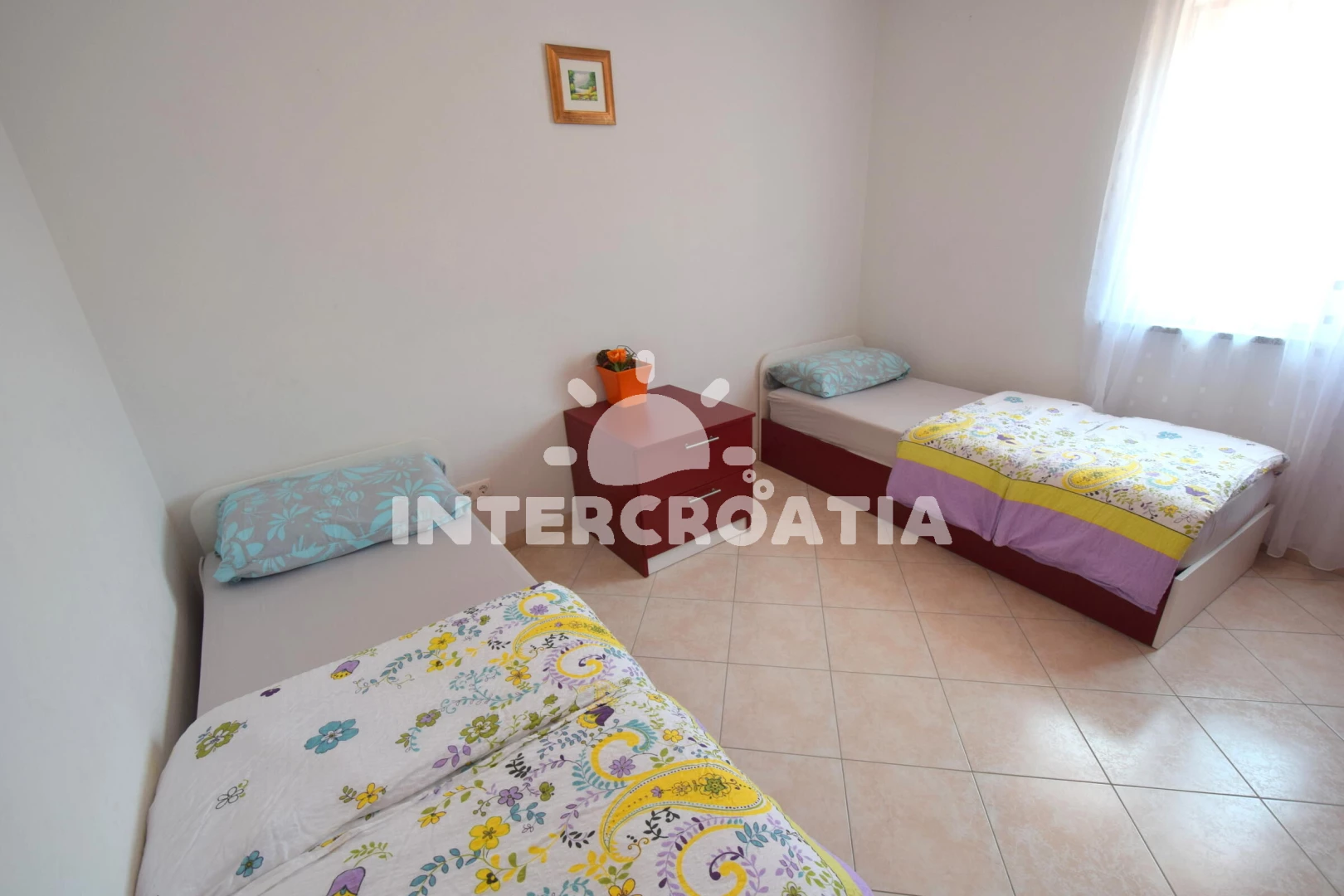 Vzdálenosti: Moře 150 m, pláž 300 m (skály), supermarket 300 m, bar 500 m, restaurace 500 m, veřejná doprava 3 km, ambulance 3 km, banka 3 km, čerpací stanice 3 km, lékárna 3 km, centrum 3,5 km, trajekt (Valbiska (Krk)) 7 km, letiště 14 km,