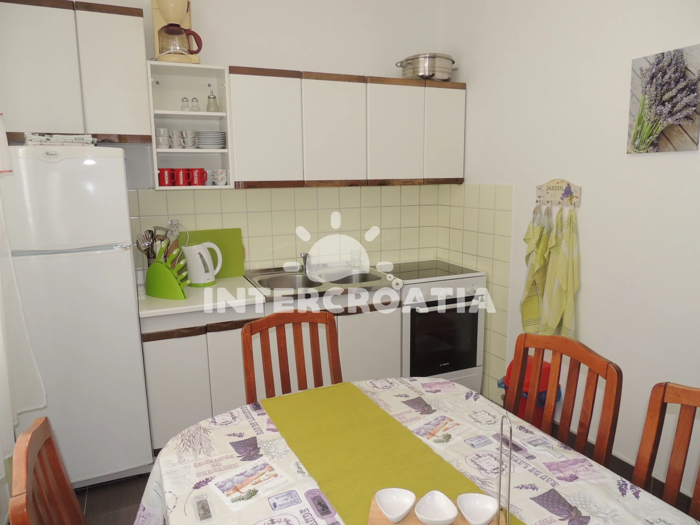 Vzdálenosti: Moře 900 m, pláž 900 m (oblázky), restaurace 500 m, supermarket 600 m, bar 700 m, centrum 800 m, lékárna 800 m, směnárna 800 m, banka 800 m, muzeum 800 m, veřejná doprava 900 m, diskotéka 900 m, ambulance 900 m, pošta 900 m, čerpací stanice 1 km, mini golf 1,5 km, potápění 1,5 km,
