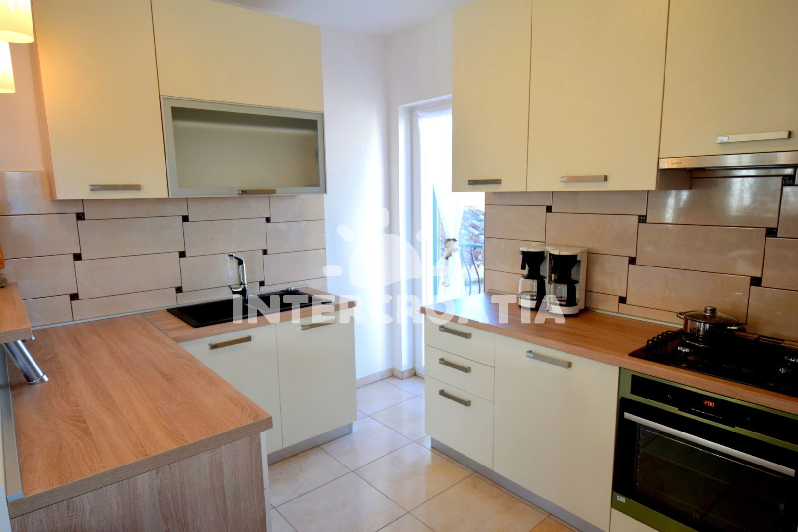 Vzdálenosti: Moře 30 m, pláž 100 m (oblázky), bar 10 m, restaurace 10 m, supermarket 500 m, veřejná doprava 3,5 km, potápění 4 km, čerpací stanice 4,3 km, diskotéka 4,3 km, ambulance 4,4 km, centrum 4,5 km, muzeum 4,5 km, banka 4,5 km, lékárna 4,5 km, směnárna 4,5 km, pošta 4,6 km,