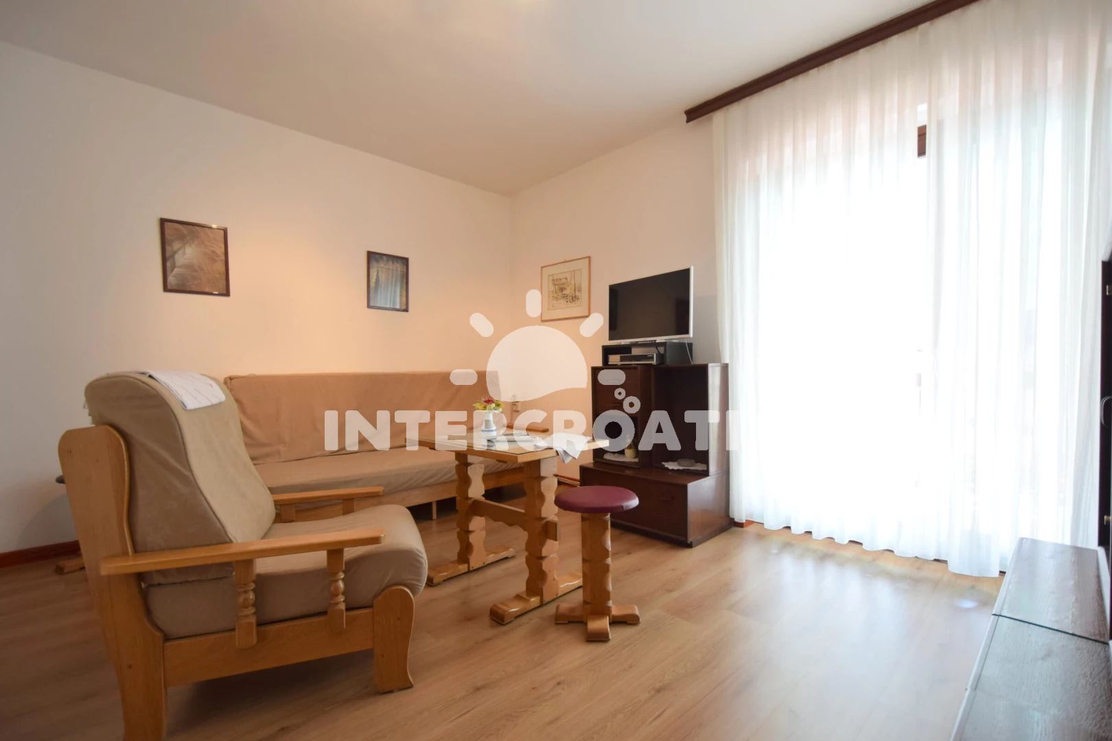 Apartmán (30 m2) s balkonem, a výhledem na moře. Nachází se v 1. patře objektu. Apartmán má 1 ložnici a je vhodný pro až 3 osoby. Kuchyňská linka je vybavena varnou deskou, kávovarem, nádobím, lednicí. V obývací místnosti je rozložitelná pohovka (extra lůžko pro 1 osobu). K dispozici televize se satelitním programem. Koupelna s vanou, umyvadlem, WC.