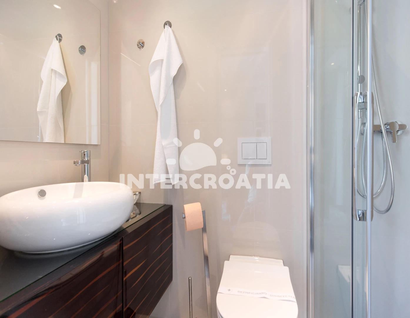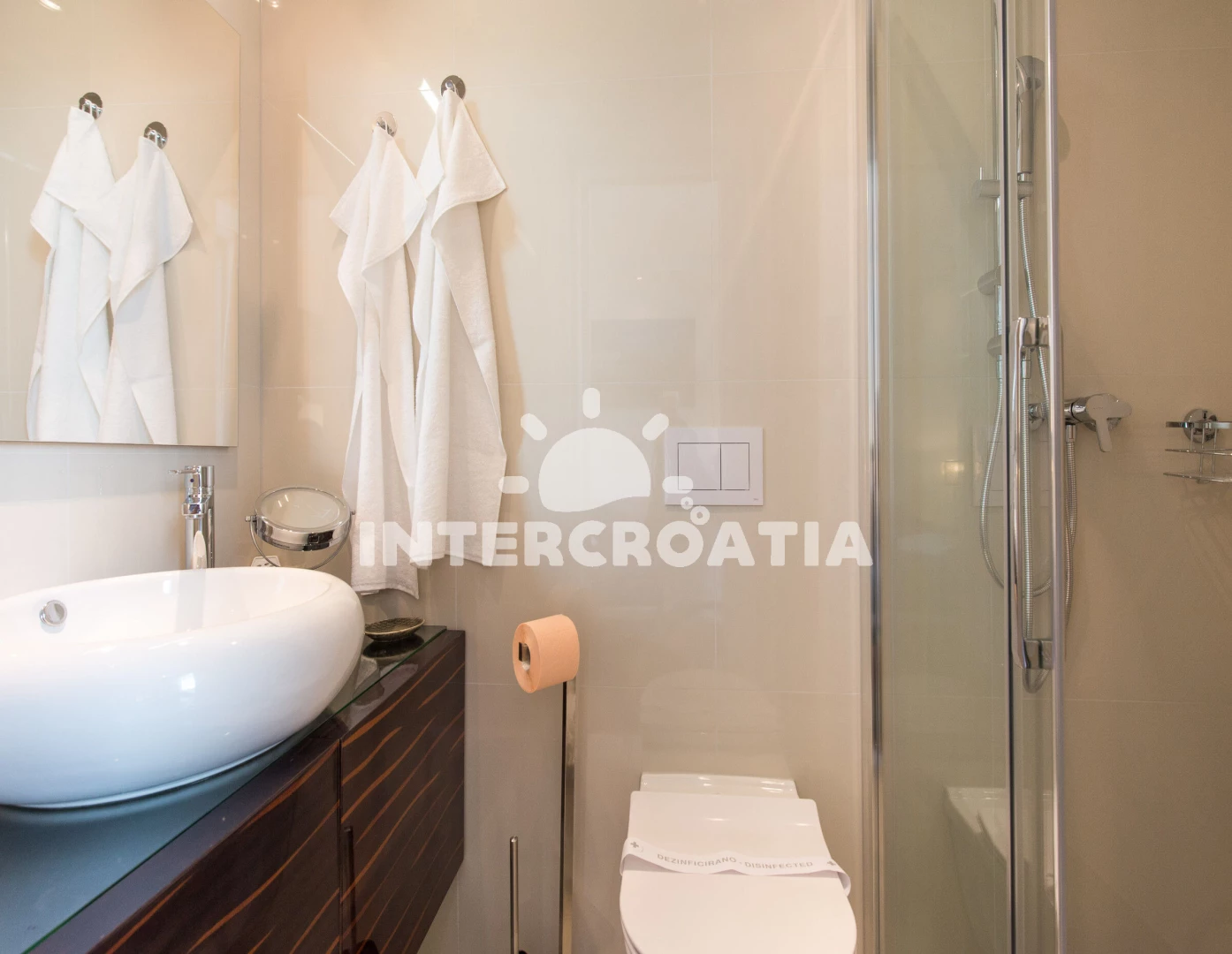 Domácí zvířata nejsou povolena. V ceně pobytu zahrnuto: WiFi, klimatizace (část místností), topení, povlečení, ručníky, pračka, dětská postýlka (služba na požádání), závěrečný úklid, pobytová taxa. Host je povinen v den příjezdu do ubytování složit vratnou zálohu celkem 200 €, kterou dostane zpět v den odjezdu, pokud nepoškodil ubytovací jednotku. Pronajímatel se dorozumí chorvatsky, anglicky, německy, italsky. Pronajímatel vás bude očekávat po 14:00. V den odjezdu je nutné vyklidit apartmán do 10:00.