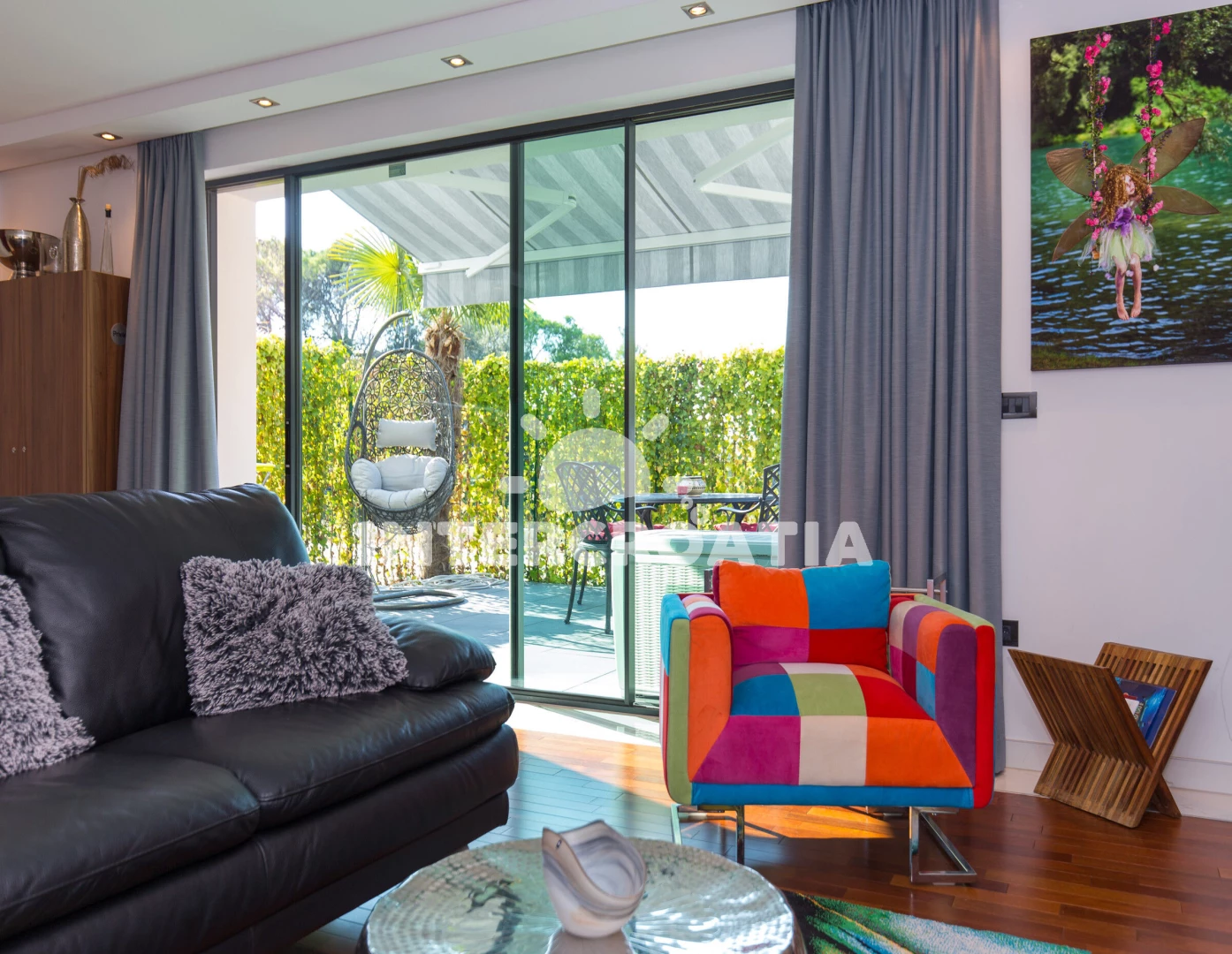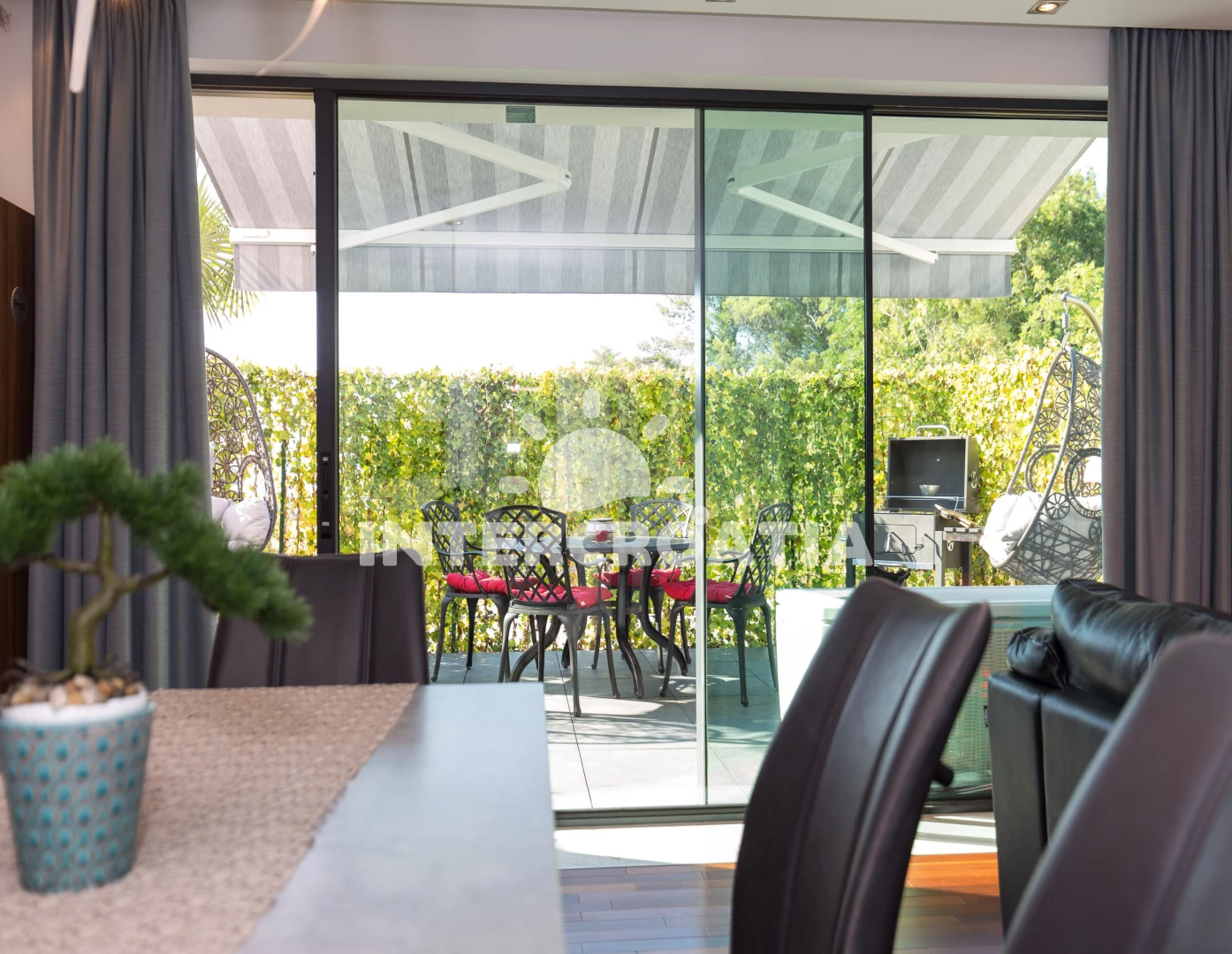 Apartmán (65 m2) s balkonem, s terasou. Nachází se v přízemí objektu. Apartmán má 1 ložnici a je vhodný pro až 5 osob. Kuchyňská linka je vybavena varnou deskou, troubou, toustovačem, kávovarem, myčkou na nádobí, mikrovlnnou troubou, rychlovarnou konvicí, nádobím, lednicí, mrazákem. V obývací místnosti je rozložitelná pohovka (extra lůžko pro 1 osobu). K dispozici televize se satelitním programem, sejf. První koupelna se sprchovým koutem, umyvadlem, fénem a WC. Druhá koupelna se sprchovým koutem, umyvadlem, fénem a WC. Dále samostatné WC.