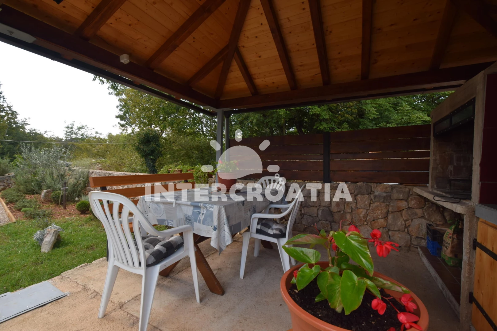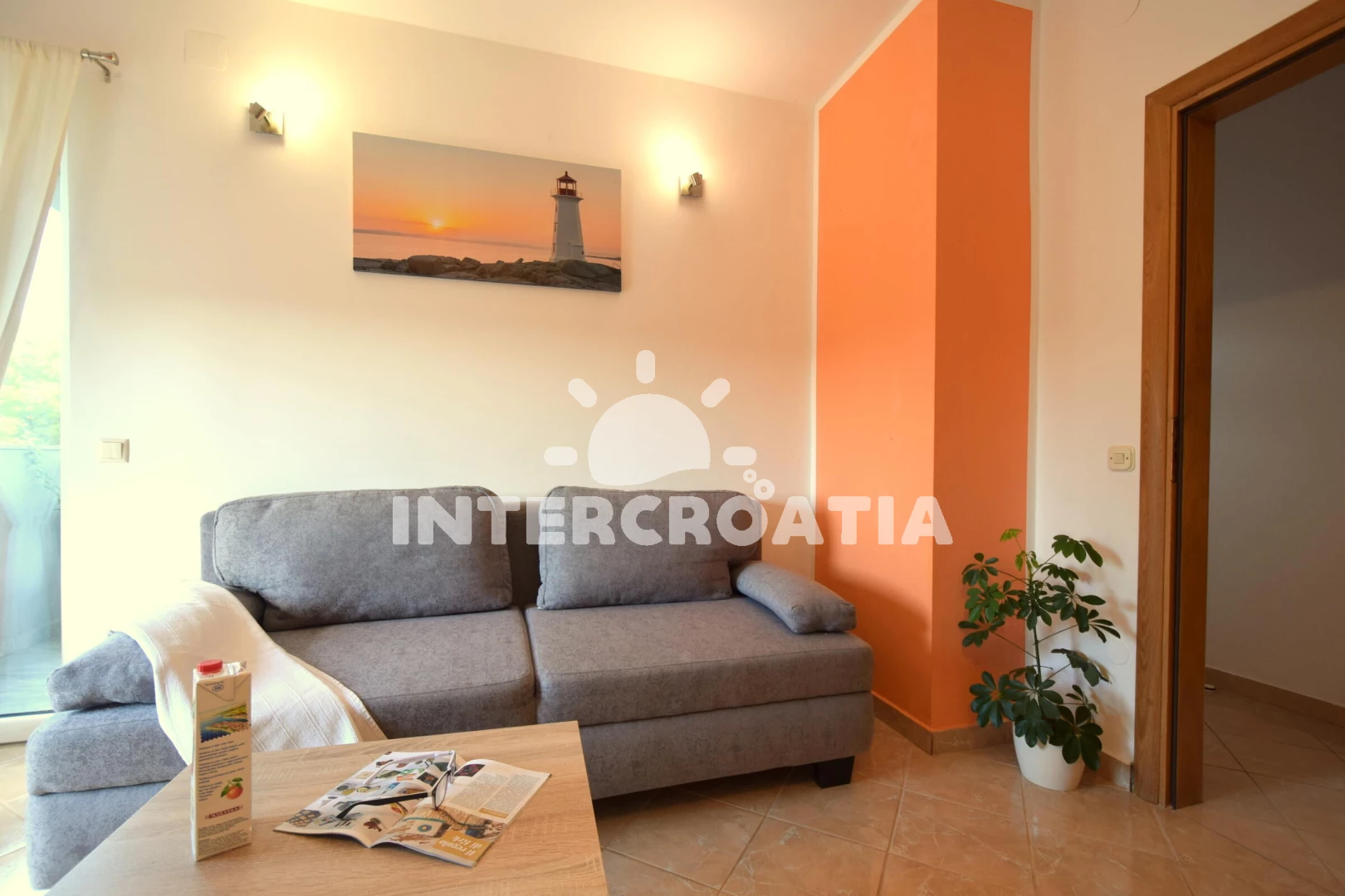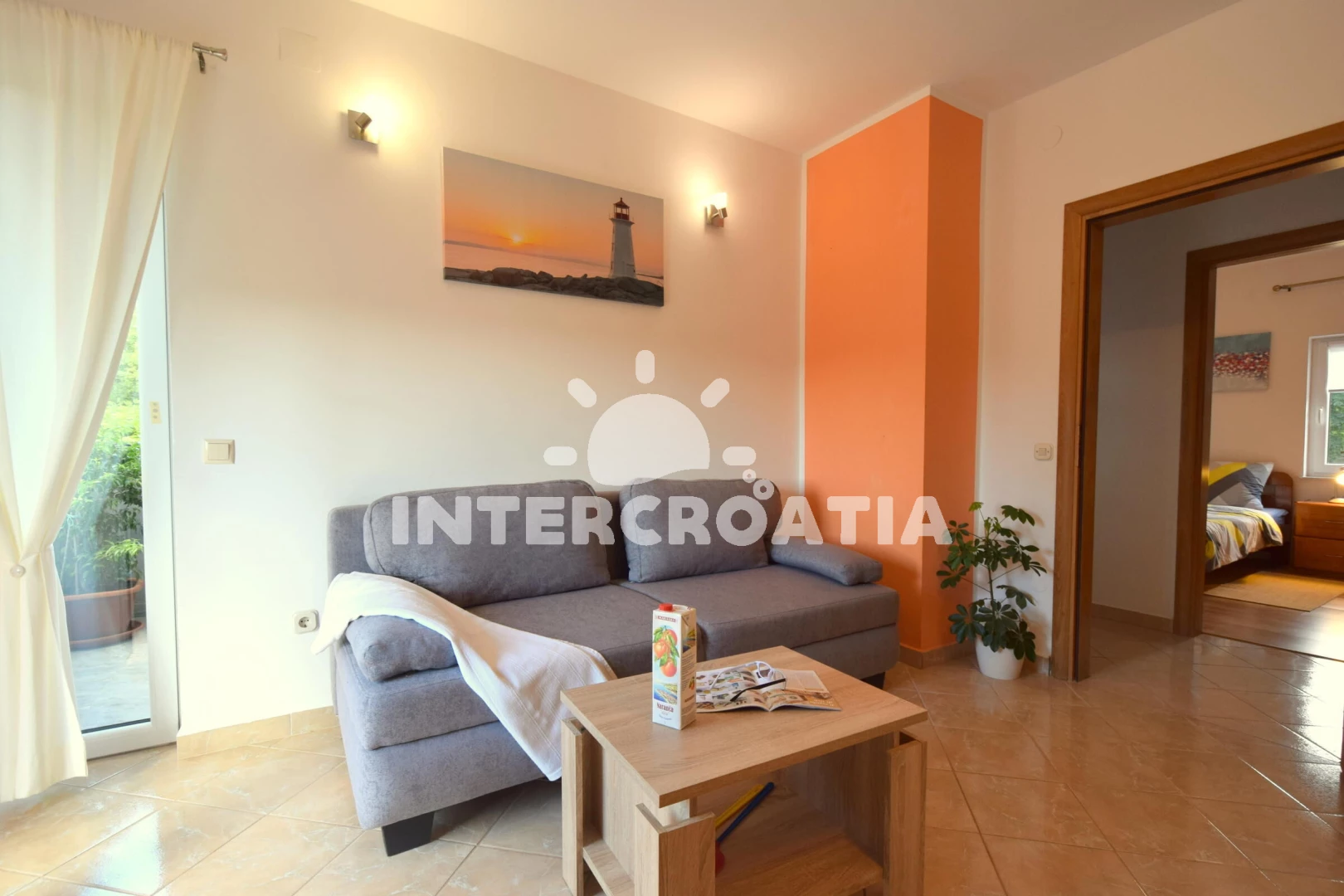 Apartmán se nachází 4000 m od moře a pláže. Pláž je skalnatá, oblázková, větší kamení a betonové desky. U objektu je k dispozici společná zahrada s posezením a grilem. Parkování je před domem.