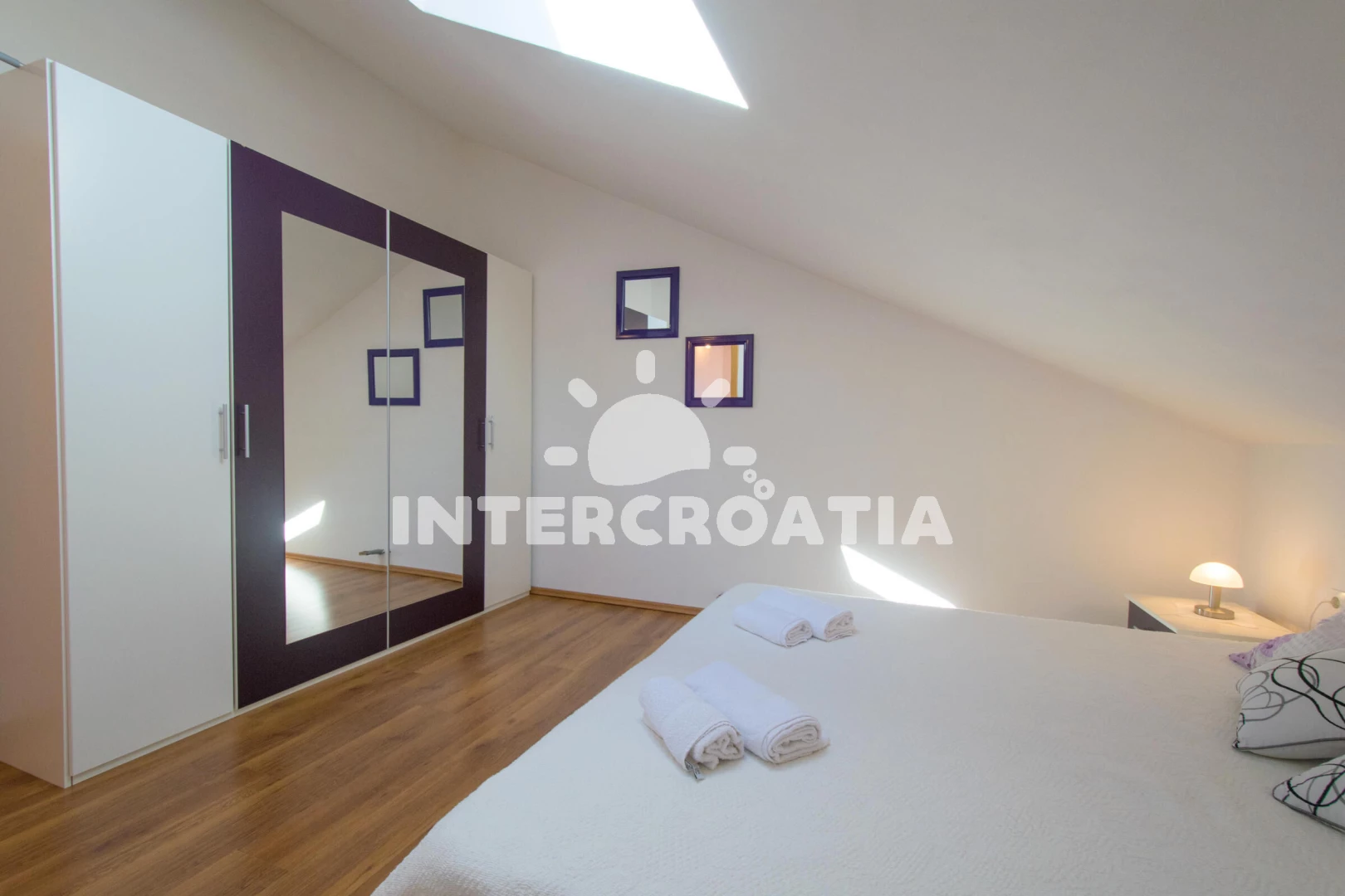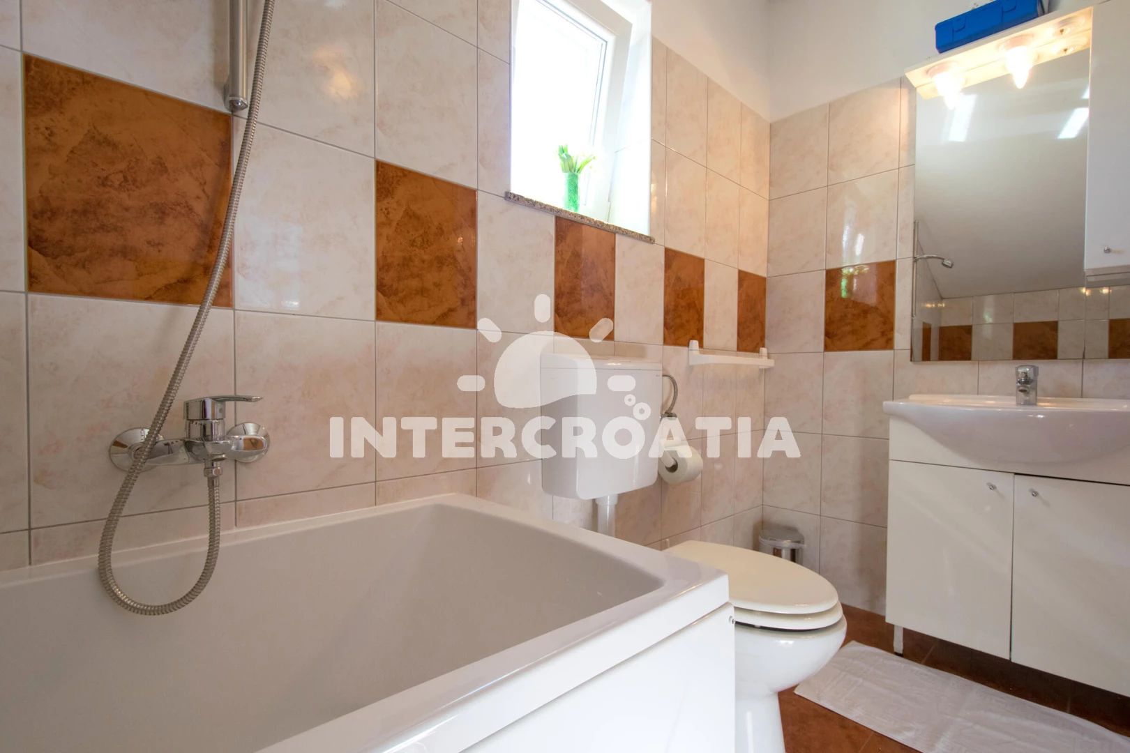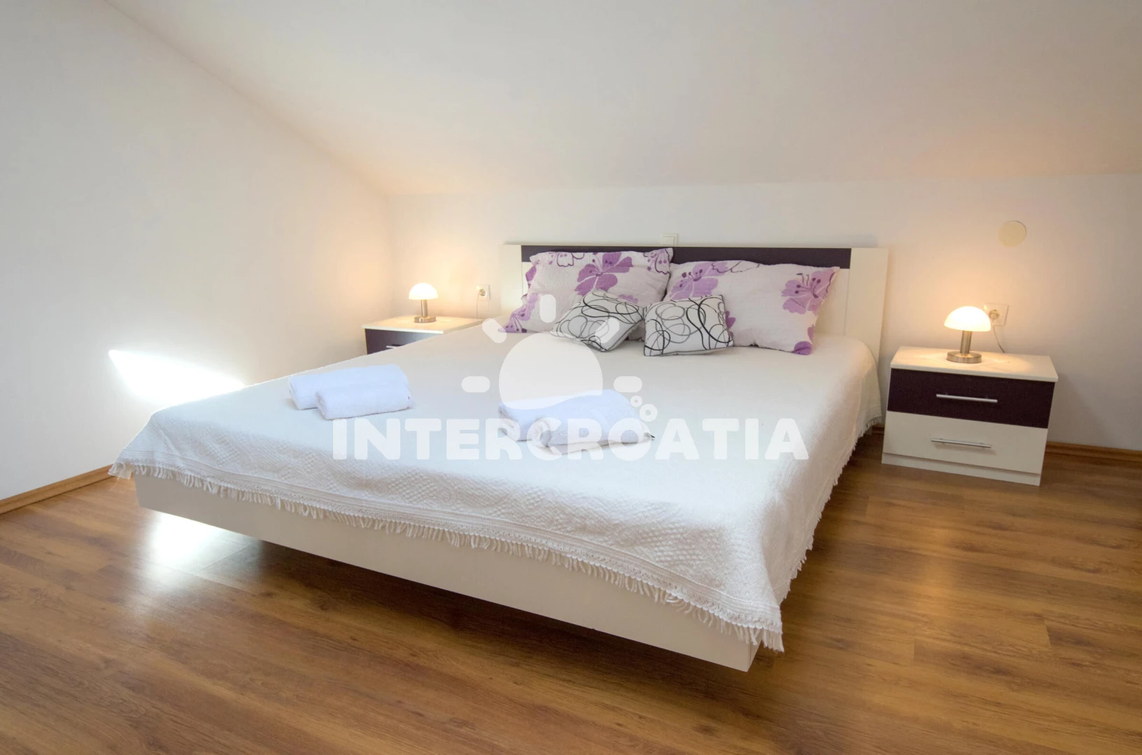 Apartmán se nachází 300 m od moře a pláže. Pláž je betonové desky, skalnatá a větší kamení. U objektu je k dispozici společná zahrada s posezením a grilem. Parkování je před domem.