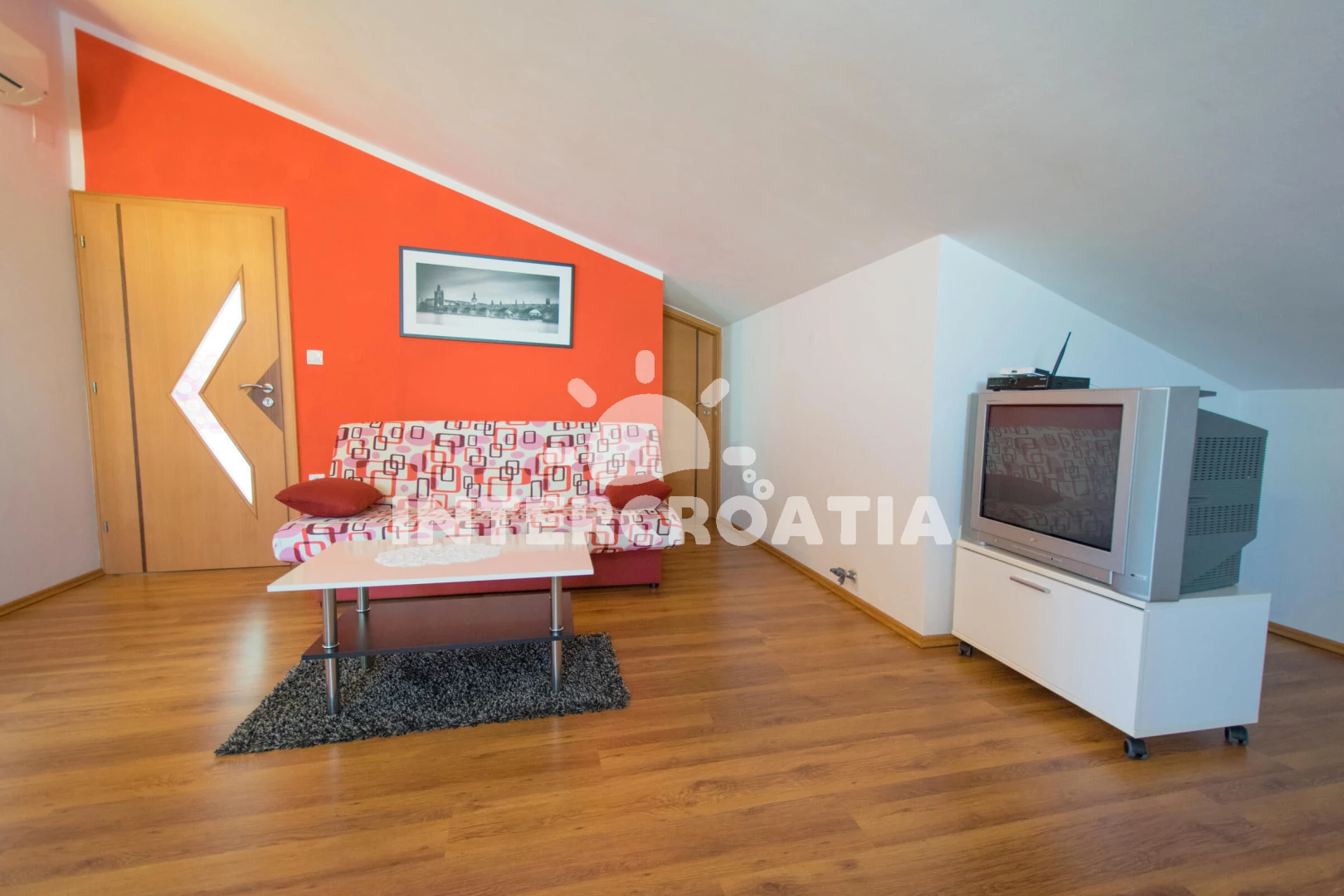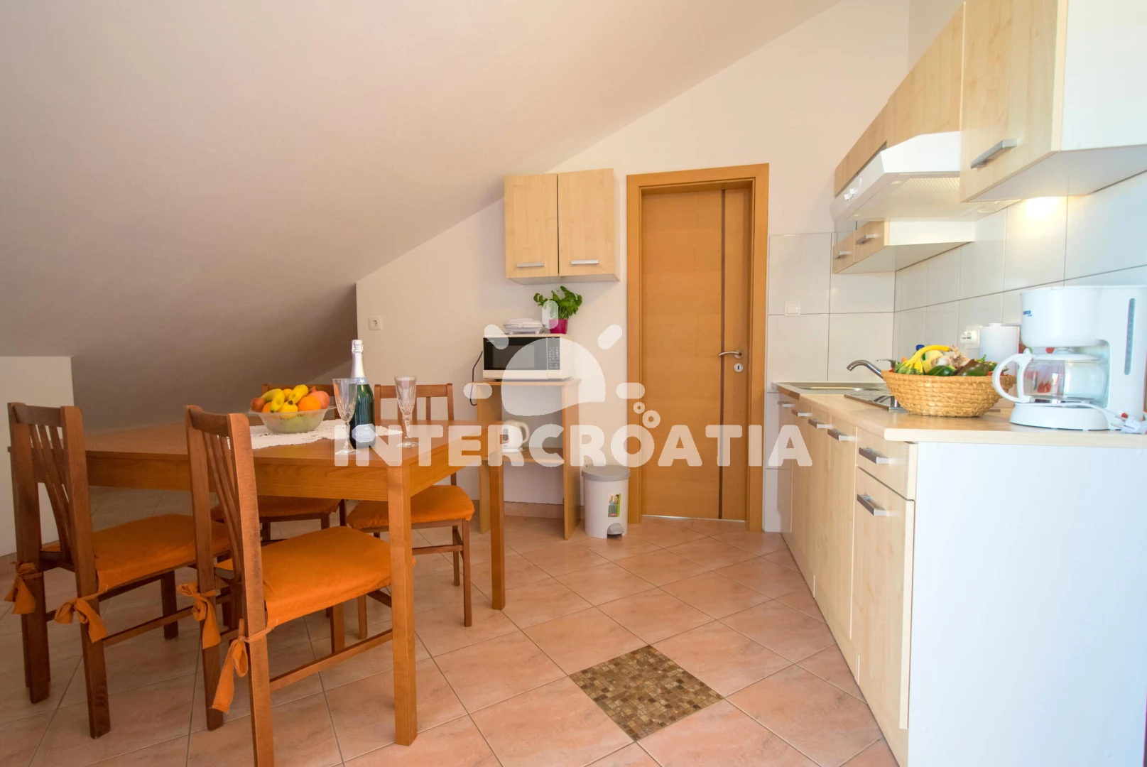 Apartmán (45 m2) s balkonem, a výhledem na moře. Nachází se v podkroví objektu. Apartmán má 1 ložnici a je vhodný pro až 2 osoby. Kuchyňská linka je vybavena varnou deskou, toustovačem, kávovarem,…
