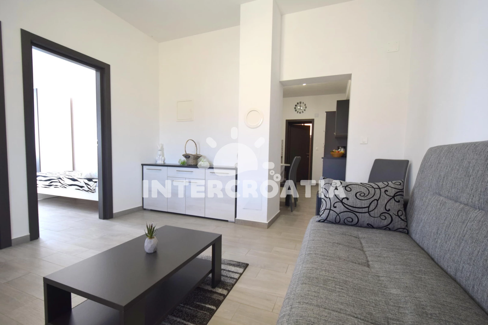 Apartmán se nachází 300 m od moře a pláže. Pláž je betonové desky, skalnatá a větší kamení. U objektu je k dispozici společná zahrada s posezením a grilem. Parkování je před domem.