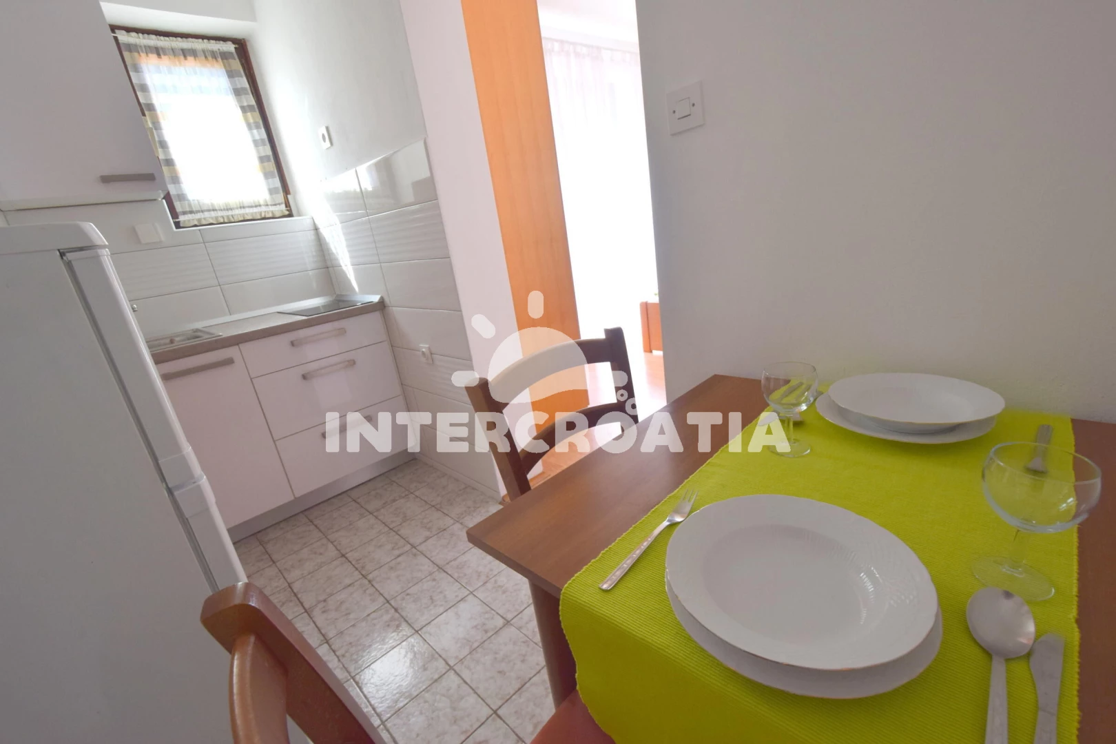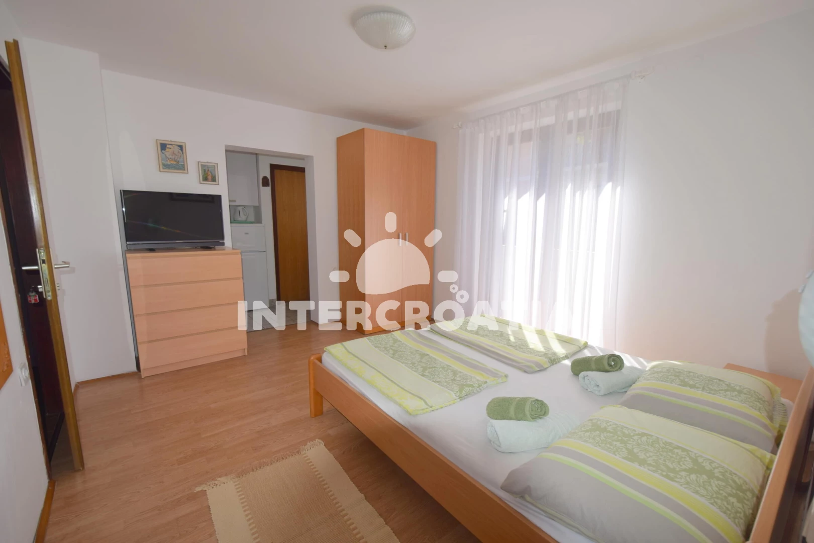 Apartmán se nachází 350 m od moře a pláže. Pláž je oblázková a betonové desky. U objektu je k dispozici společná zahrada s posezením a grilem. Parkování je před domem.