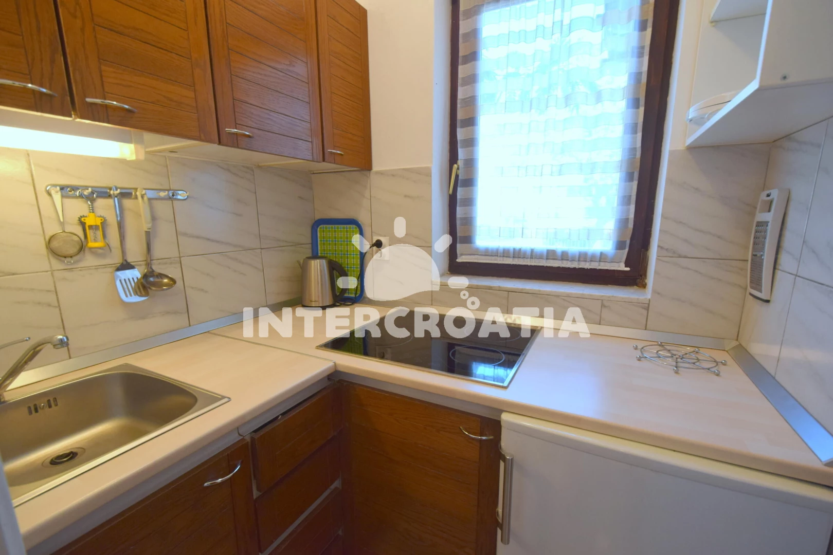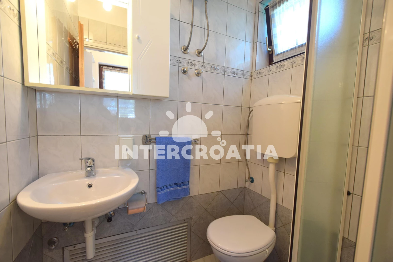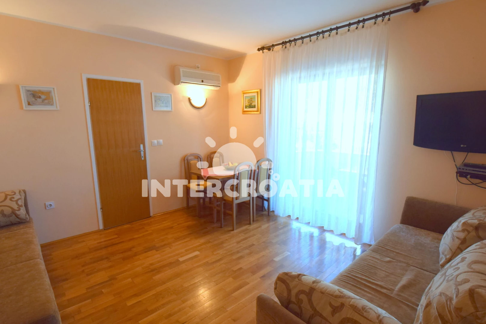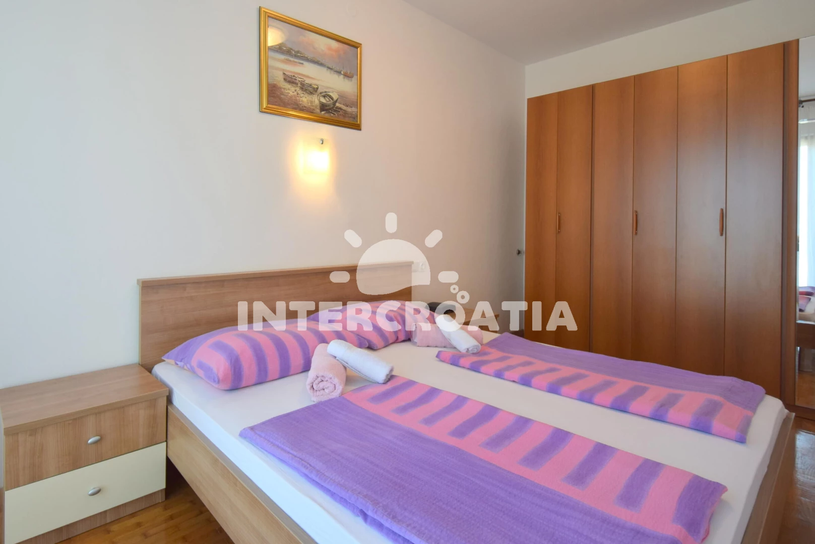 Apartmán se nachází 350 m od moře a pláže. Pláž je oblázková a betonové desky. U objektu je k dispozici společná zahrada s posezením a grilem. Parkování je před domem.