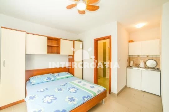 Apartmán typu studio (25 m2) s balkonem. Nachází se v 1. patře objektu. Kuchyňská linka je vybavena varnou deskou, rychlovarnou konvicí, nádobím, lednicí. K dispozici dvoulůžko, televize se satelitním programem. Koupelna se sprchovým koutem, umyvadlem, WC.