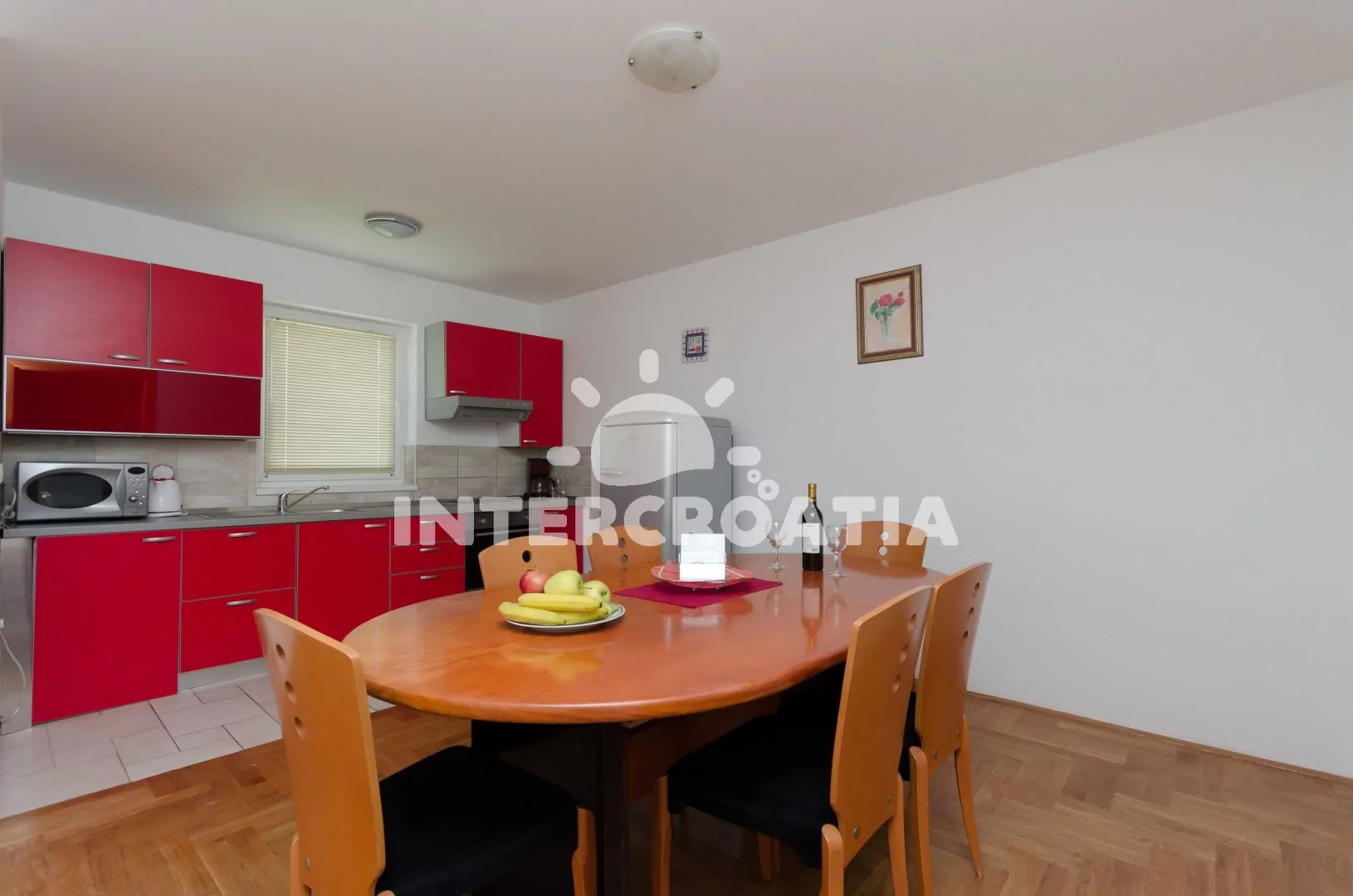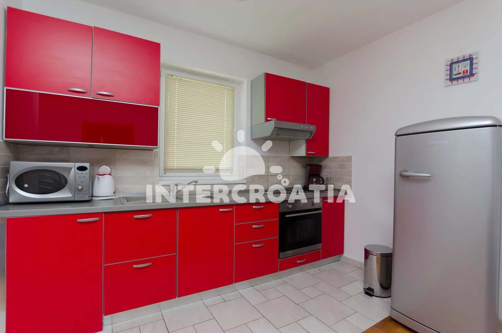 Příjemně zařízená vilka s apartmány, částečným výhledem na moře a lodžiemi s venkovním posezením, upravená zahrada, se společnou pergolou, grilem a posezením. Vlastní parkovací místa pod částečně krytým přístřeškem.