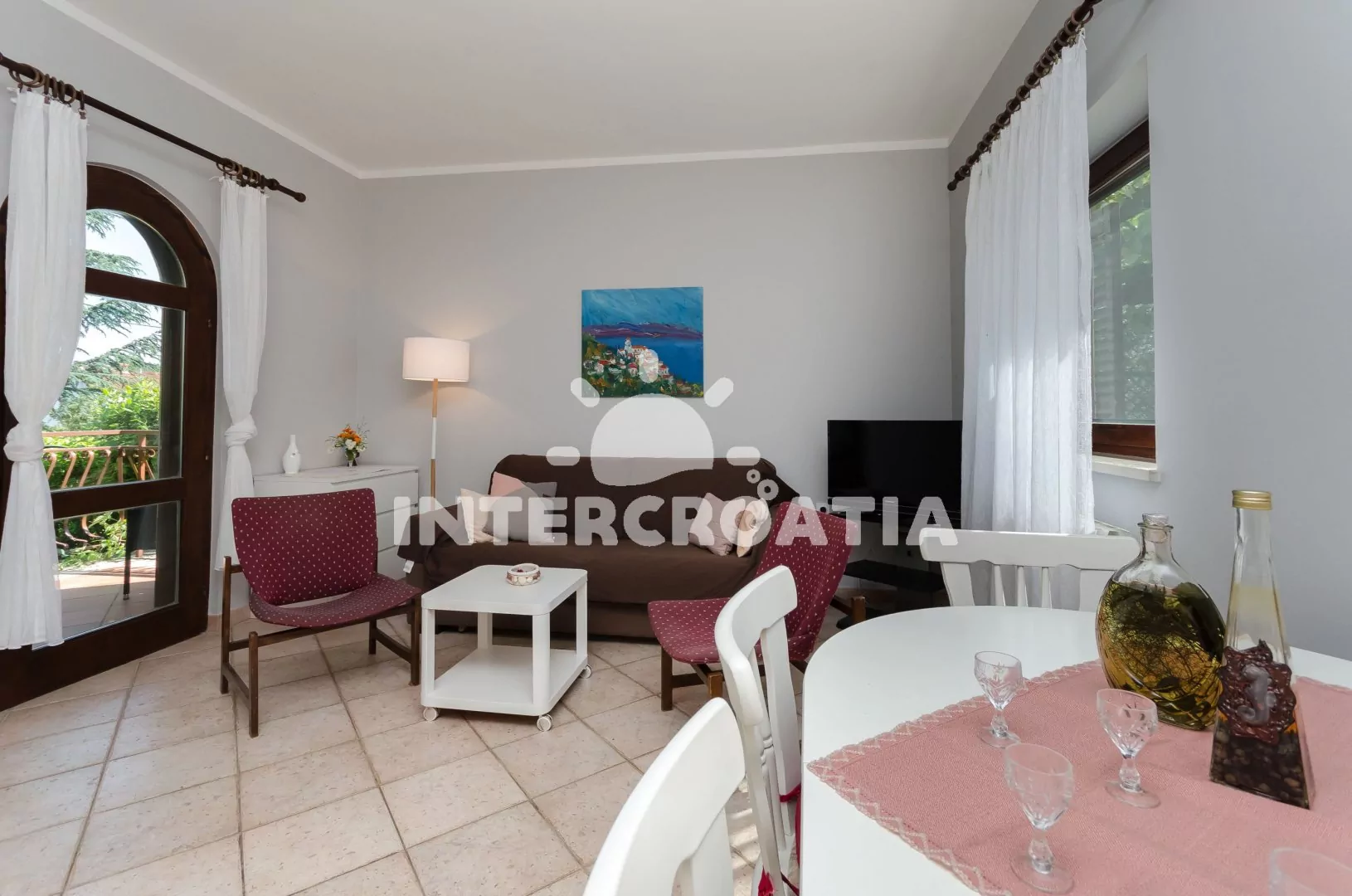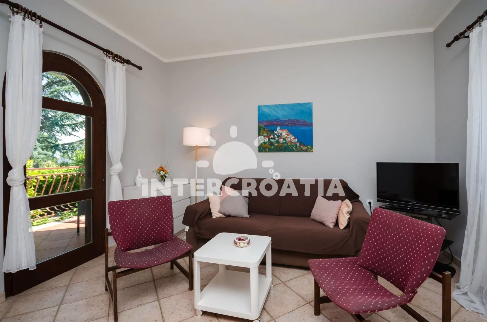 Apartmán s terasou se nachází v přízemí domu a je vhodný pro 2 až 4 osoby. Obývací pokoj je spojený s kuchyní. Kuchyňská linka je vybavena sporákem, digestoří, kávovarem, nádobím a lednicí s mrazákem. Obývací pokoj s jídelním stolem pro 4 osoby, televizí se satelitním programem, sedací soupravou, pohovkou (rozložitelná na extra lůžko pro 2 osoby) a vstupem na terasu. Ložnice s jedním dvoulůžkem a vstupem na terasu. Koupelna se sprchovým koutem, umyvadlem, bidetem a wc. Hostům je k dispozici parkování u objektu zdarma.