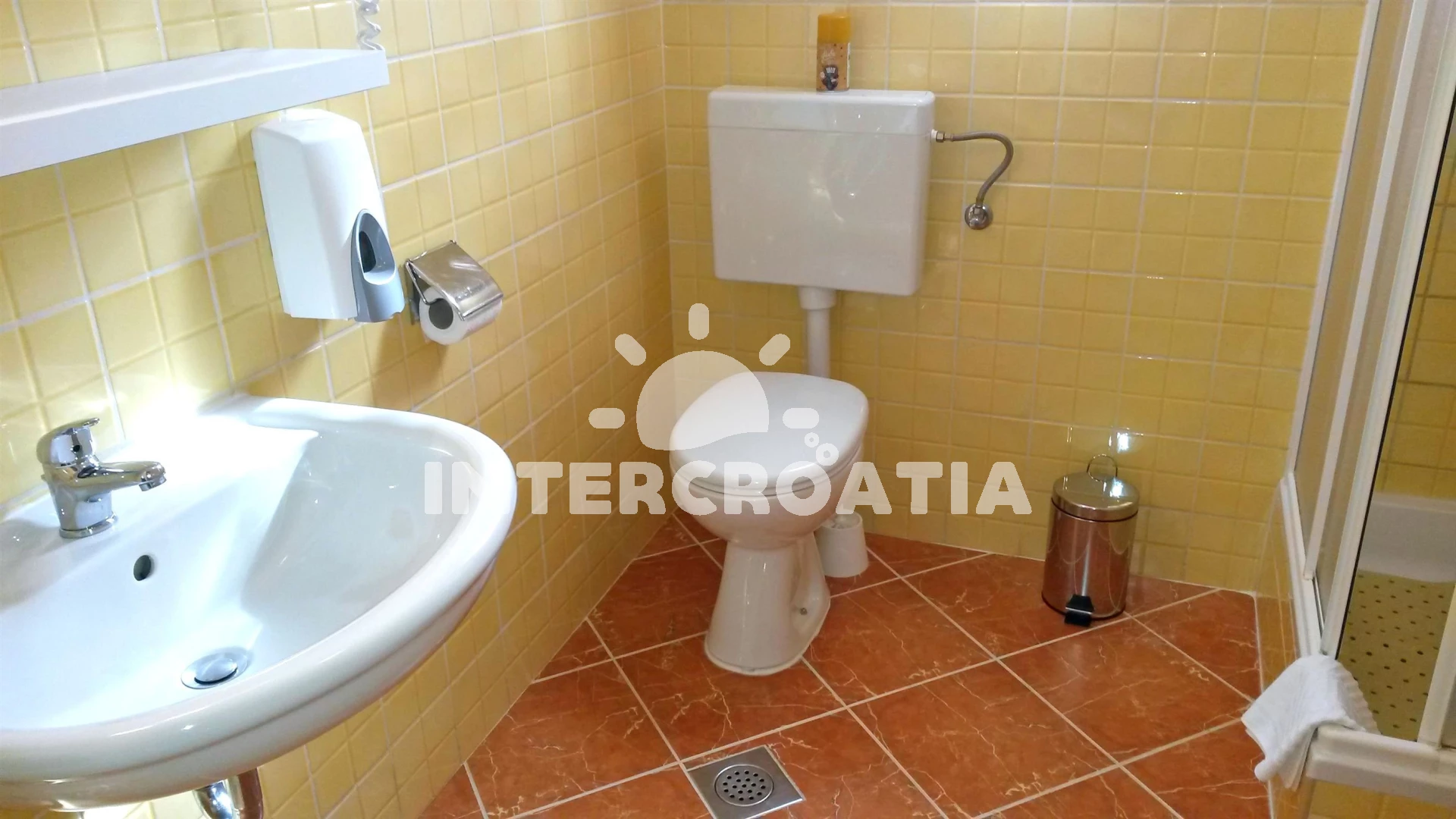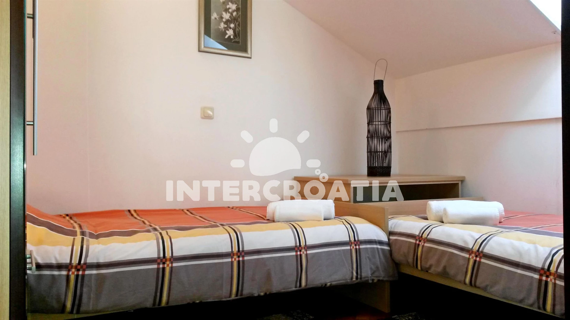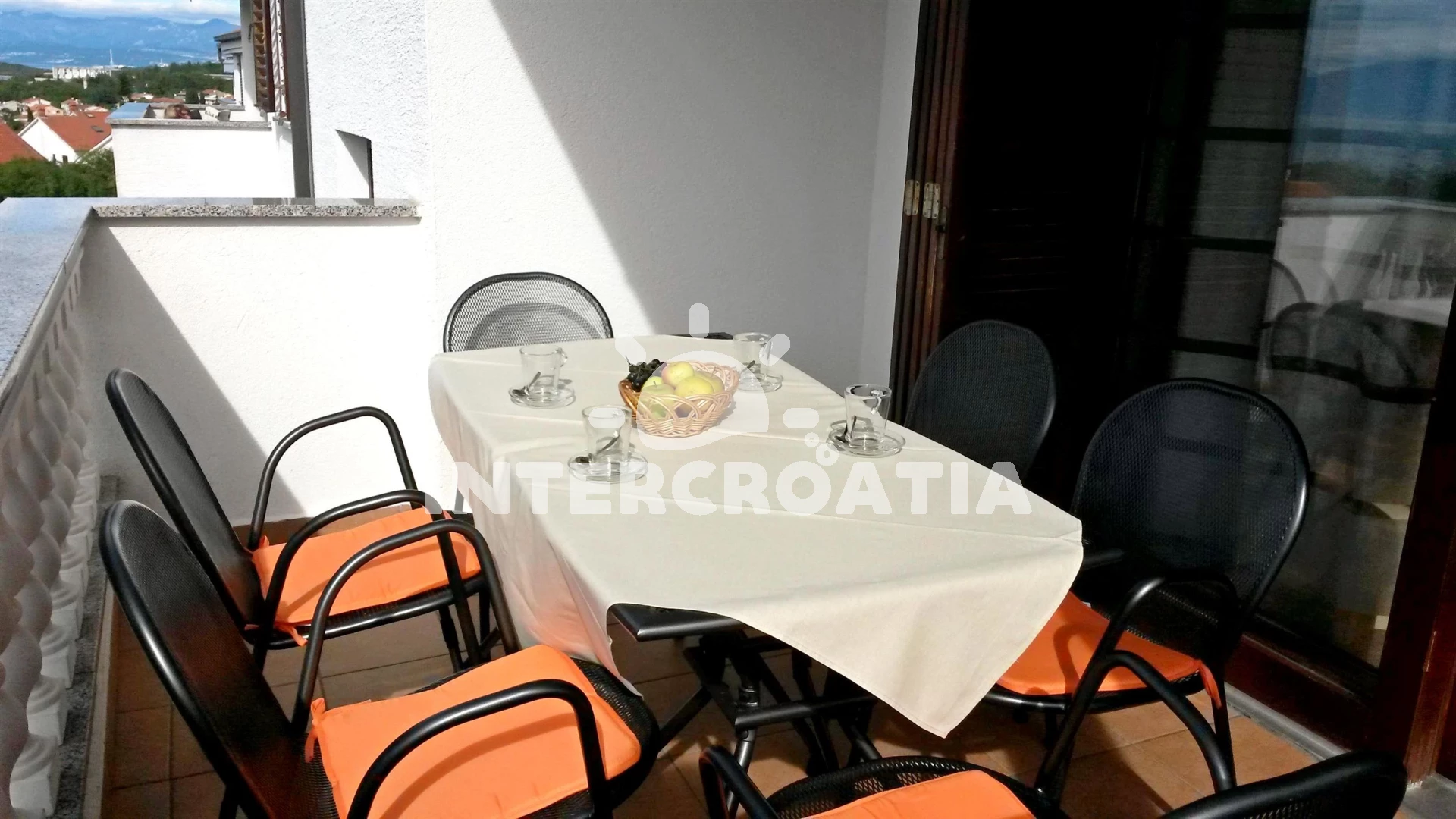 Vzdálenosti: Moře 450 m, pláž 600 m (oblázková a betonové desky), supermarket 170 m, ambulance 800 m, veřejná doprava 800 m, muzeum 1 km, diskotéka 1 km, banka 1 km, pošta 1 km, lékárna 1 km, směnárna 1 km, centrum 1,5 km, letiště (Rijeka) 12 km, trajekt (Valbiska (Krk)) 13 km,