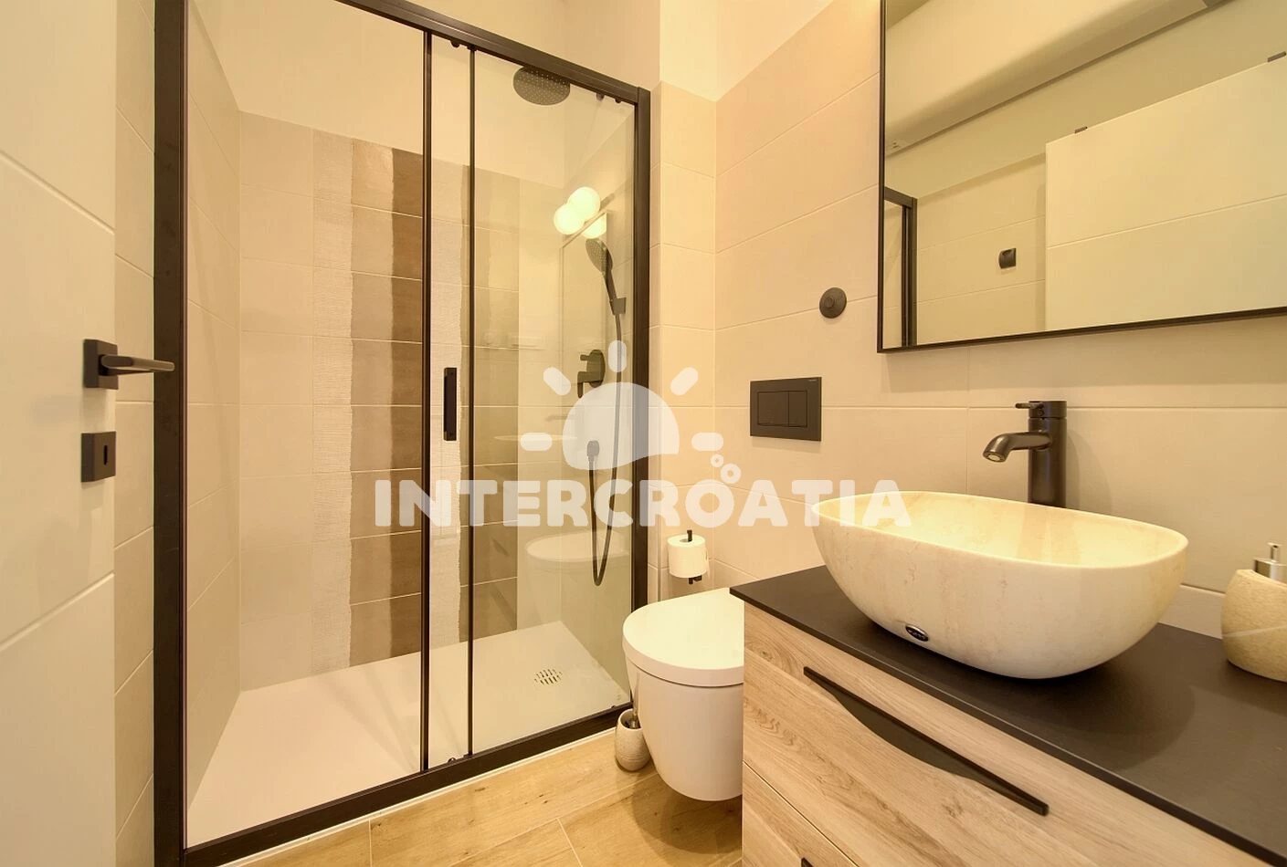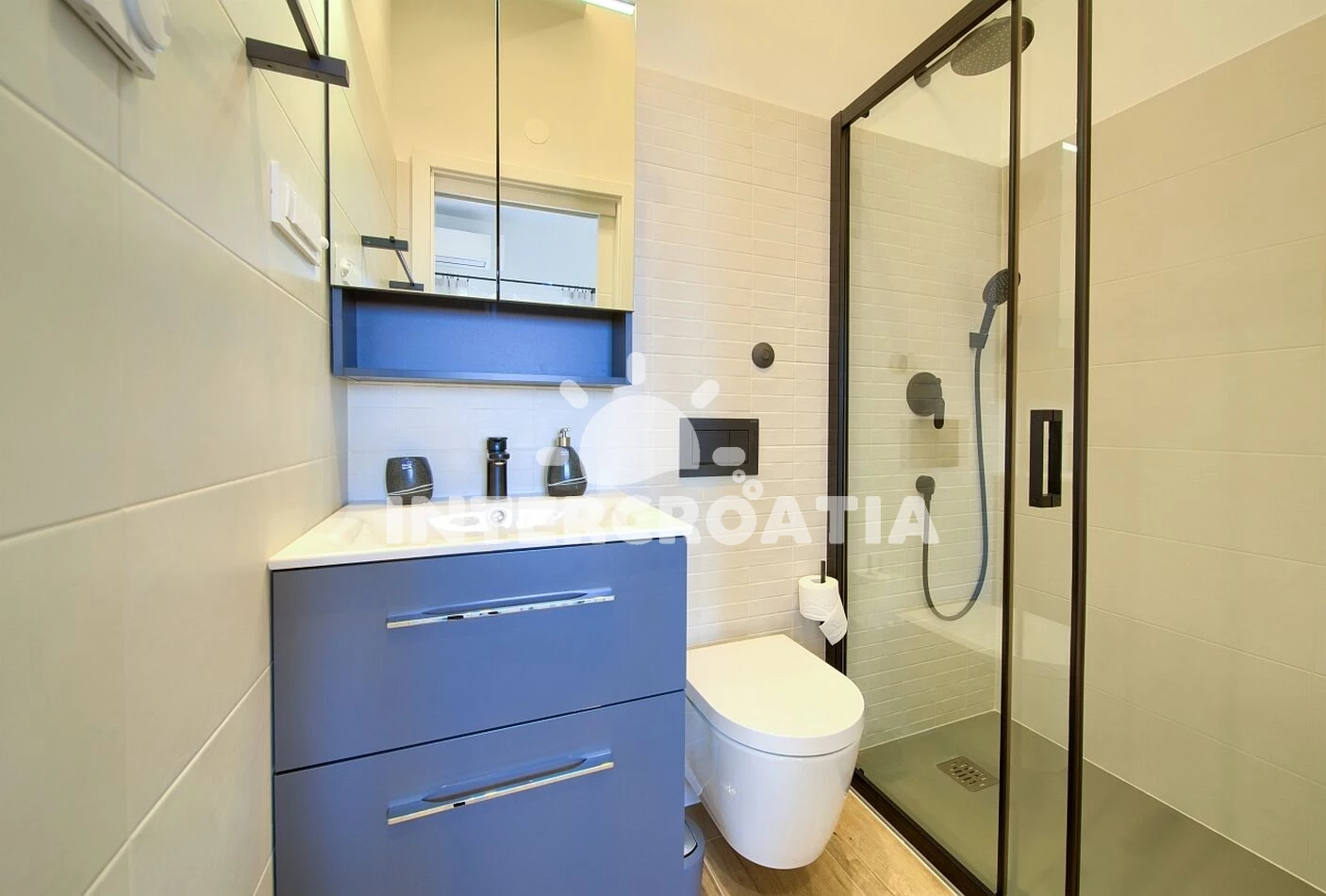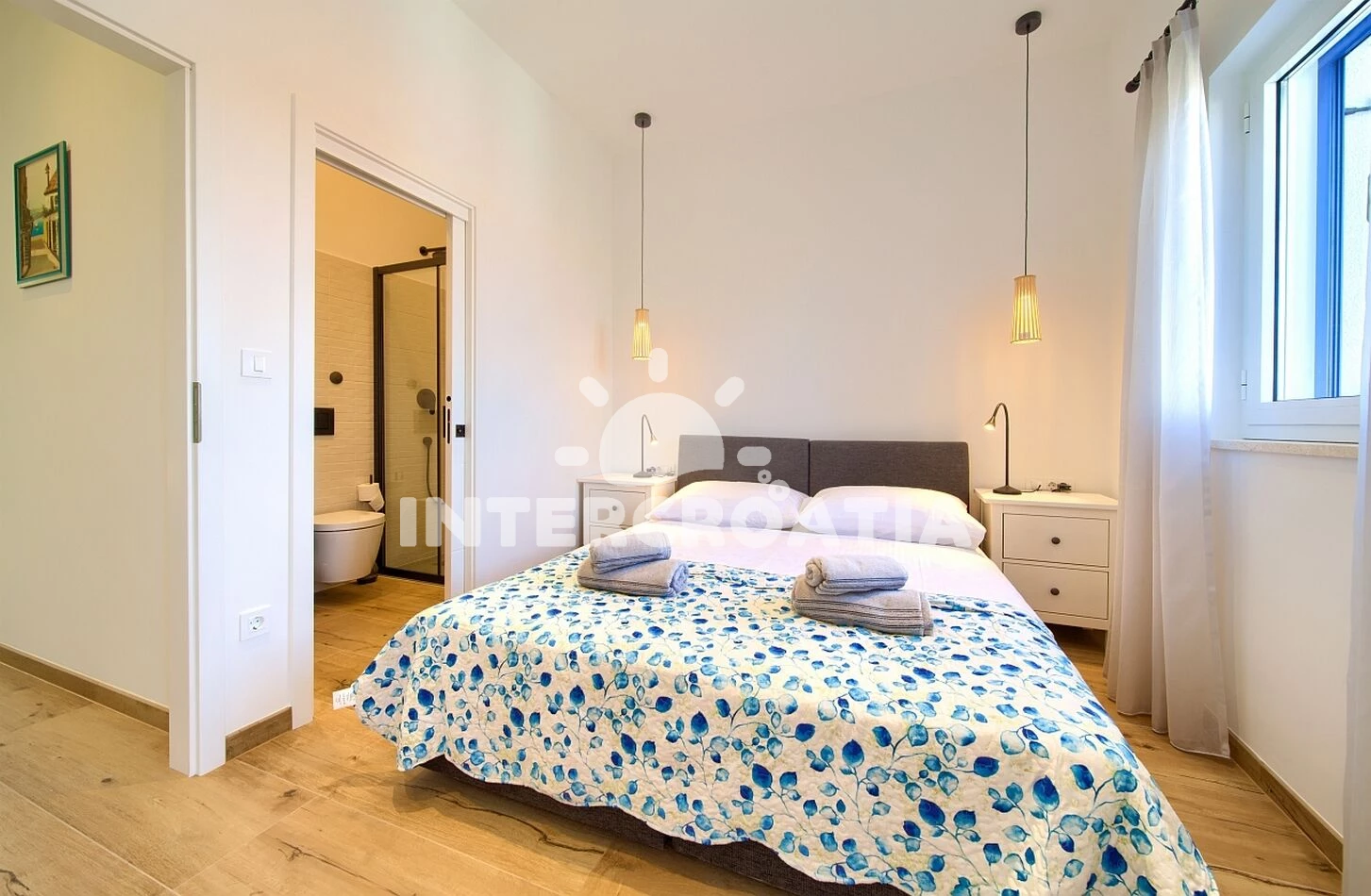 Vzdálenosti: Moře 50 m, pláž 50 m (oblázky), supermarket 10 m, centrum 10 m, pošta 50 m, bar 50 m, lékárna 50 m, restaurace 50 m, půjčovna kol 100 m, směnárna 100 m, ambulance 100 m, půjčovna motorových člunů 100 m, veřejná doprava 150 m, mini golf 300 m, potápění 300 m, tenisové kurty 300 m, diskotéka 1 km, čerpací stanice 3 km, muzeum 3 km, banka 6 km, letiště (Rijeka) 10 km, trajekt (Valbiska (Krk)) 20 km,
