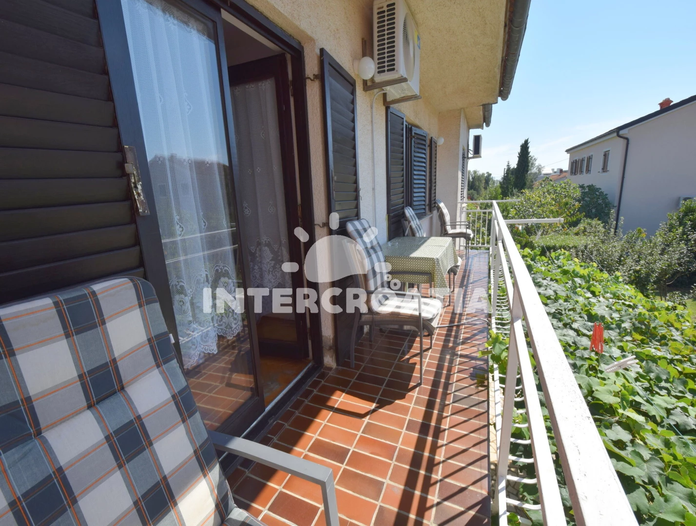 Vzdálenosti: Moře 900 m, pláž 1,2 km (skalnatá, oblázková, větší kamení a betonové desky), supermarket 150 m, směnárna 150 m, čerpací stanice 150 m, banka 500 m, pošta 500 m, restaurace 500 m, bar 500 m, půjčovna kol 500 m, centrum 500 m, muzeum 600 m, lékárna 700 m, půjčovna motorových člunů 1,2 km, marina 1,2 km, potápění 1,2 km, kotviště pro čluny 1,2 km, letiště (Rijeka) 2 km, ambulance 9 km, trajekt (Valbiska (Krk)) 22 km,