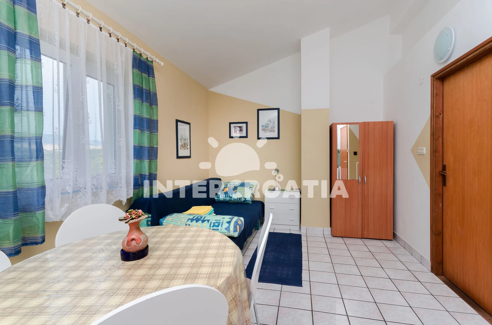 Apartmán se nachází 300 m od moře a pláže. Pláž je oblázková a betonové desky. U objektu je k dispozici společná zahrada s posezením a grilem.