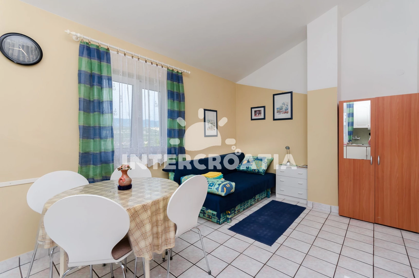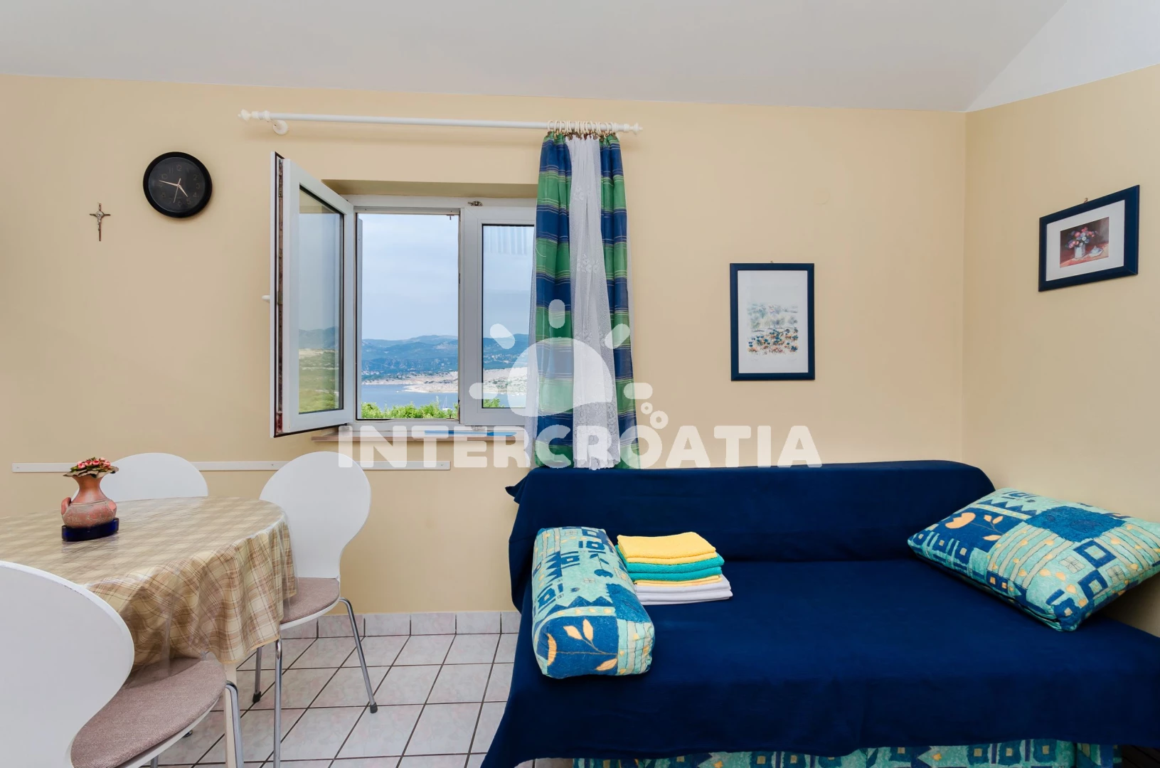 Vzdálenosti: Moře 200 m, pláž 300 m (oblázková a betonové desky), restaurace 250 m, bar 250 m, supermarket 600 m, čerpací stanice 1,5 km, lékárna 2 km, ambulance 2 km, směnárna 2 km, tenisové kurty 2 km, banka 2 km, pošta 2 km, veřejná doprava 2 km, muzeum 2 km, letiště (Rijeka) 3 km, centrum 3 km, diskotéka 6 km, trajekt (Valbiska (Krk)) 20,0 km,