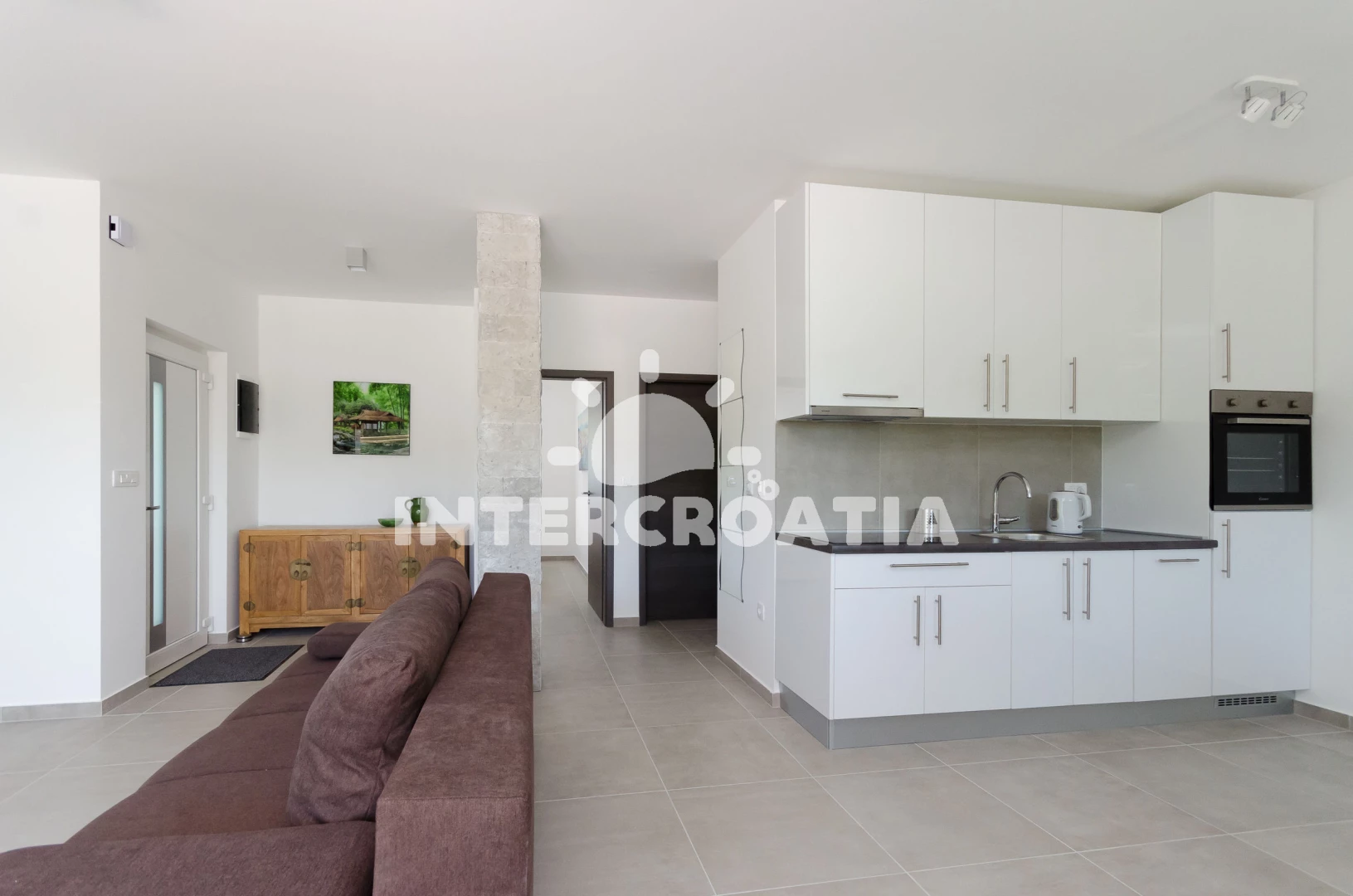 Ubytování se nachází na okraji malé osady, tedy absolutně klidné, v budově se čtyřmi apartmány. Samotný byt je také opravdu vkusně zařízen a nabízí vše, co potřebujete. Malá zahrada s bazénem je opravdu perfektní. Cítili jsme se velmi pohodlně.