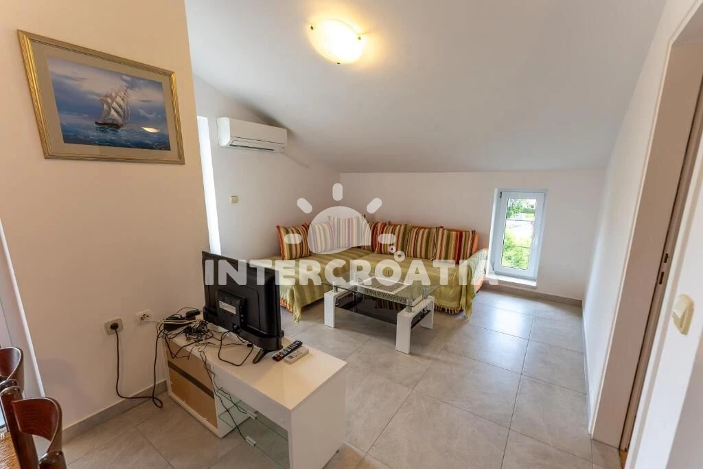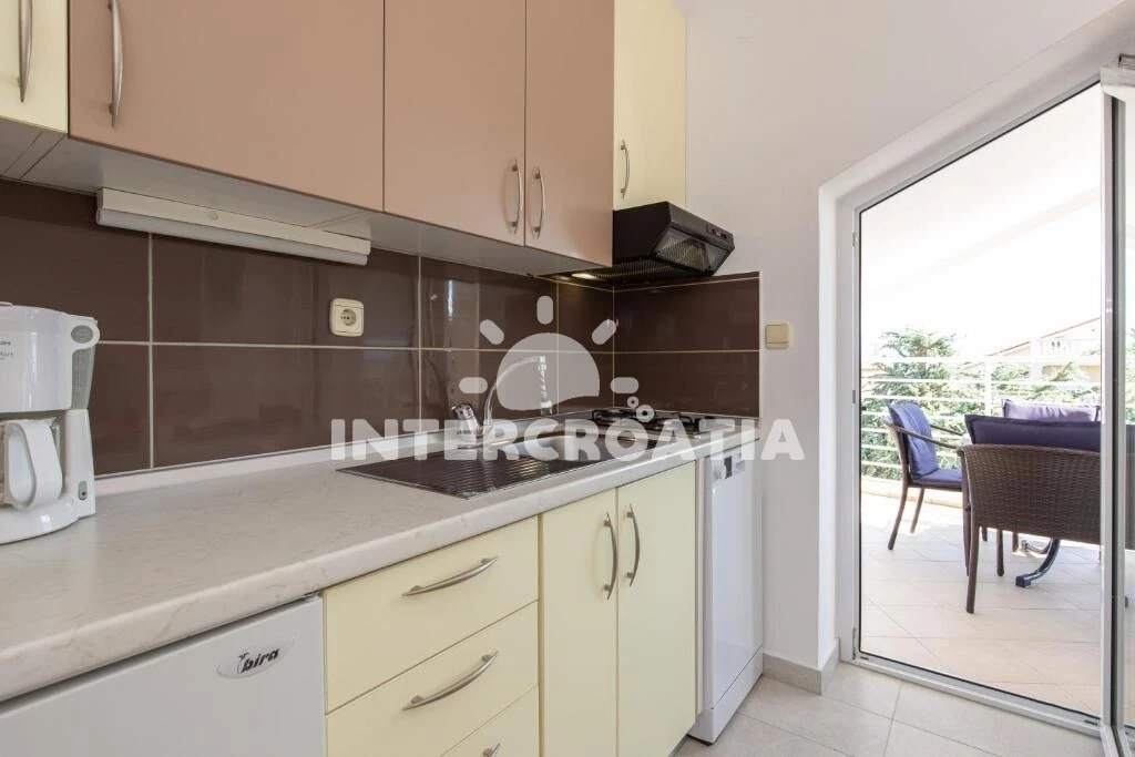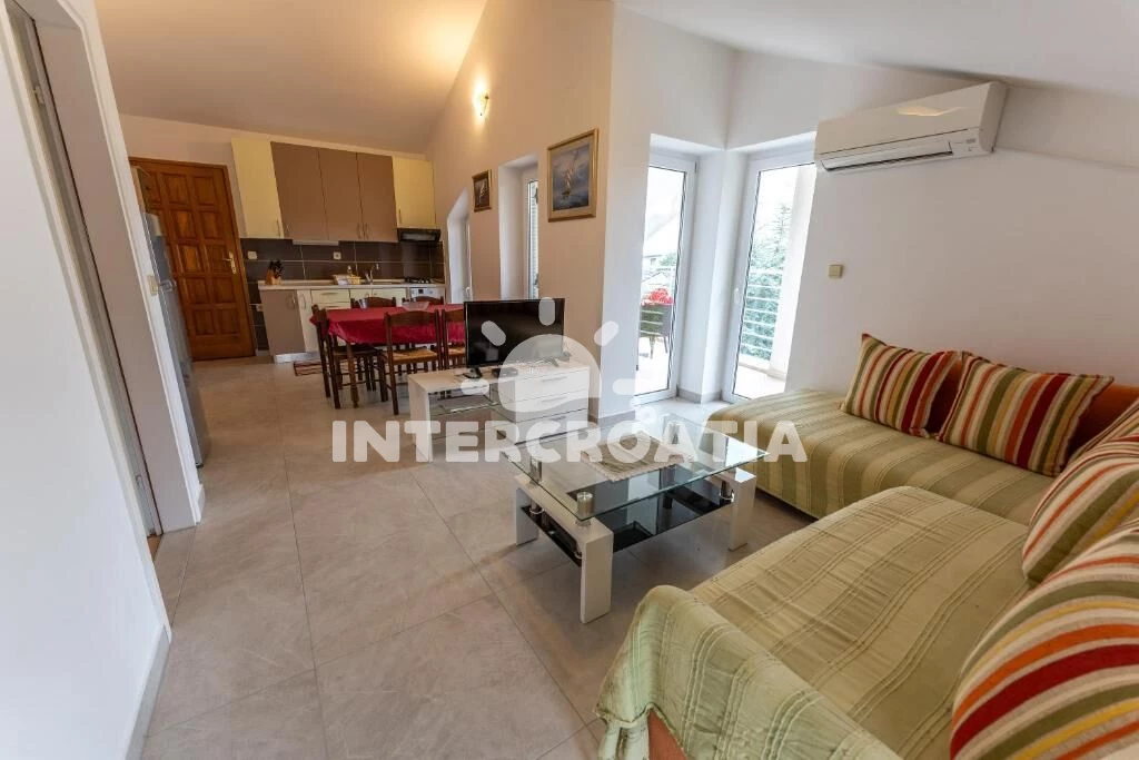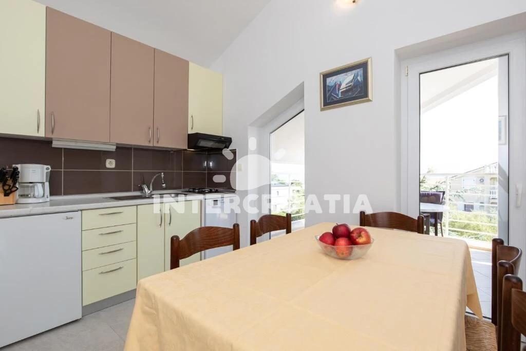 Vzdálenosti: Moře 175 m, pláž 200 m (písčitá a betonové desky), restaurace 30 m, centrum 200 m, bar 200 m, supermarket 200 m, marina 200 m, půjčovna motorových člunů 300 m, diskotéka 1 km, lékárna 2 km, půjčovna kol 2 km, potápění 2 km, ambulance 2 km, pošta 2 km, banka 2 km, čerpací stanice 2 km, směnárna 2 km, tenisové kurty 2,5 km, veřejná doprava 3 km, trajekt (Valbiska (Krk)) 16 km, letiště (Rijeka) 17 km, park Plitvice 187 km,