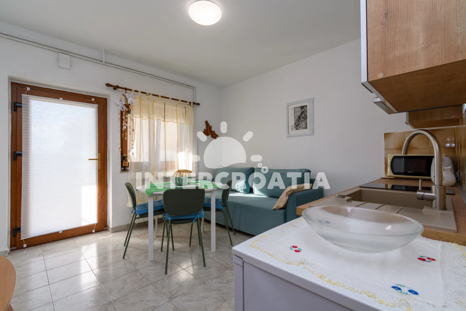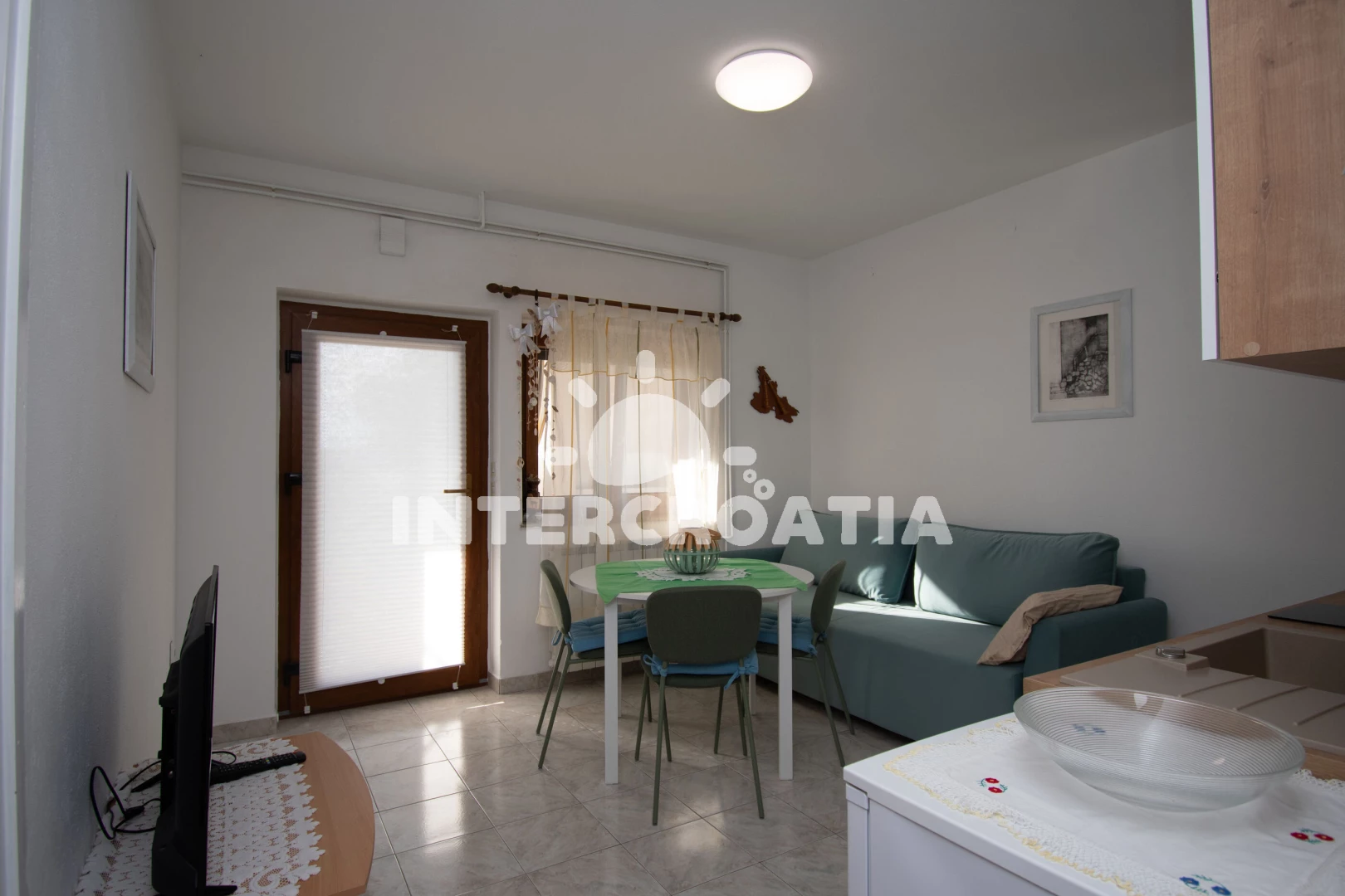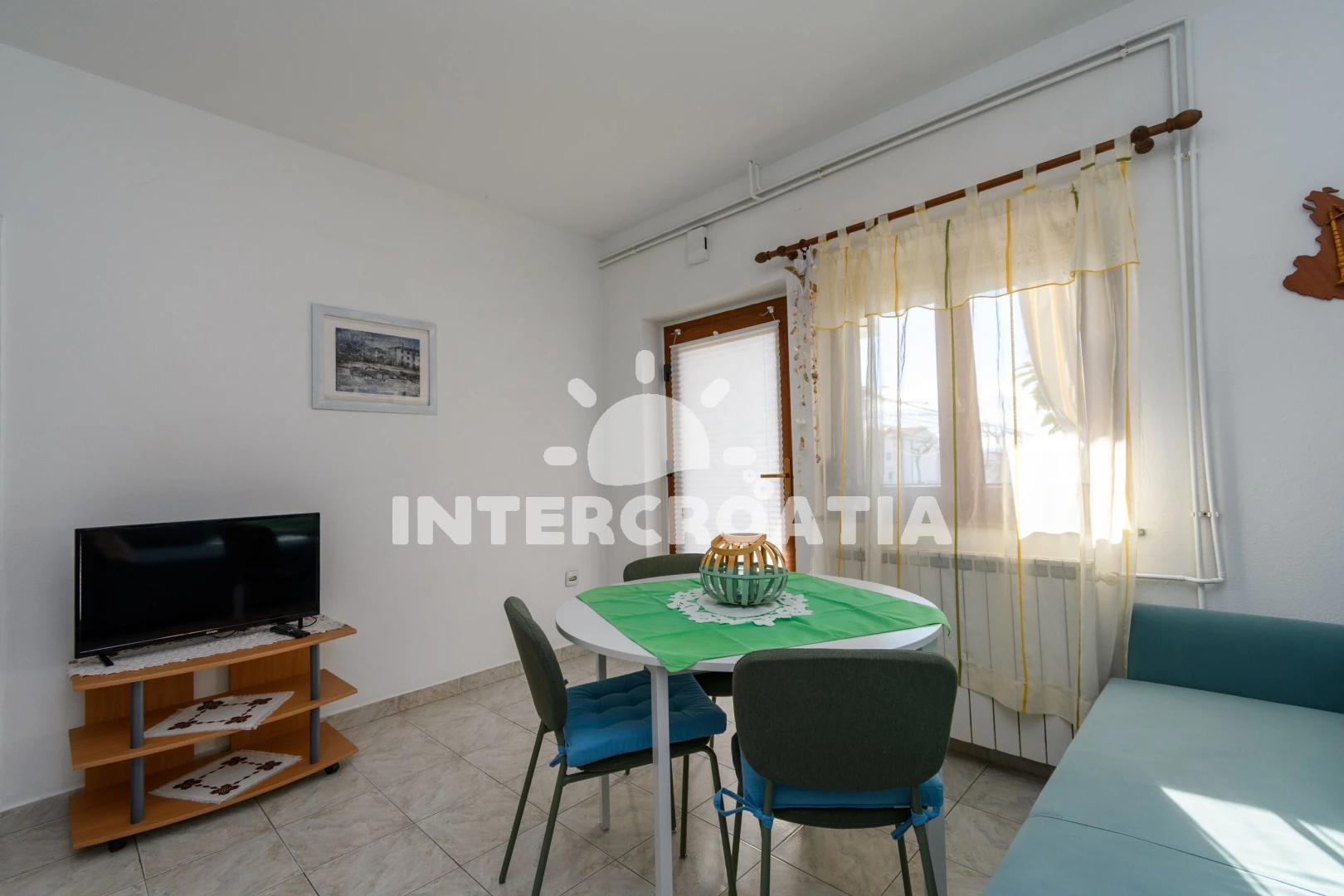 Vzdálenosti: Moře 400 m, pláž 700 m (oblázková a betonové desky), supermarket 50 m, centrum 200 m, marina 200 m, lékárna 200 m, ambulance 200 m, směnárna 200 m, banka 200 m, pošta 200 m, bar 200 m, restaurace 200 m, čerpací stanice 6,6 km, trajekt (Valbiska (Krk)) 20 km, letiště (Rijeka) 33 km,