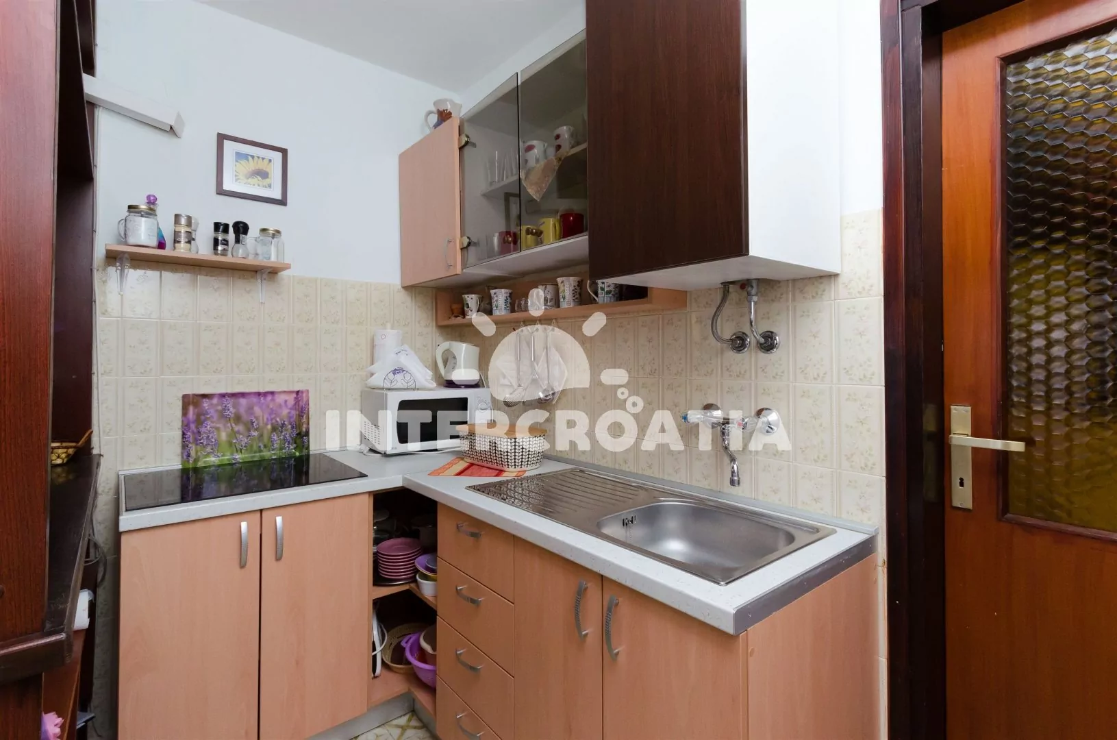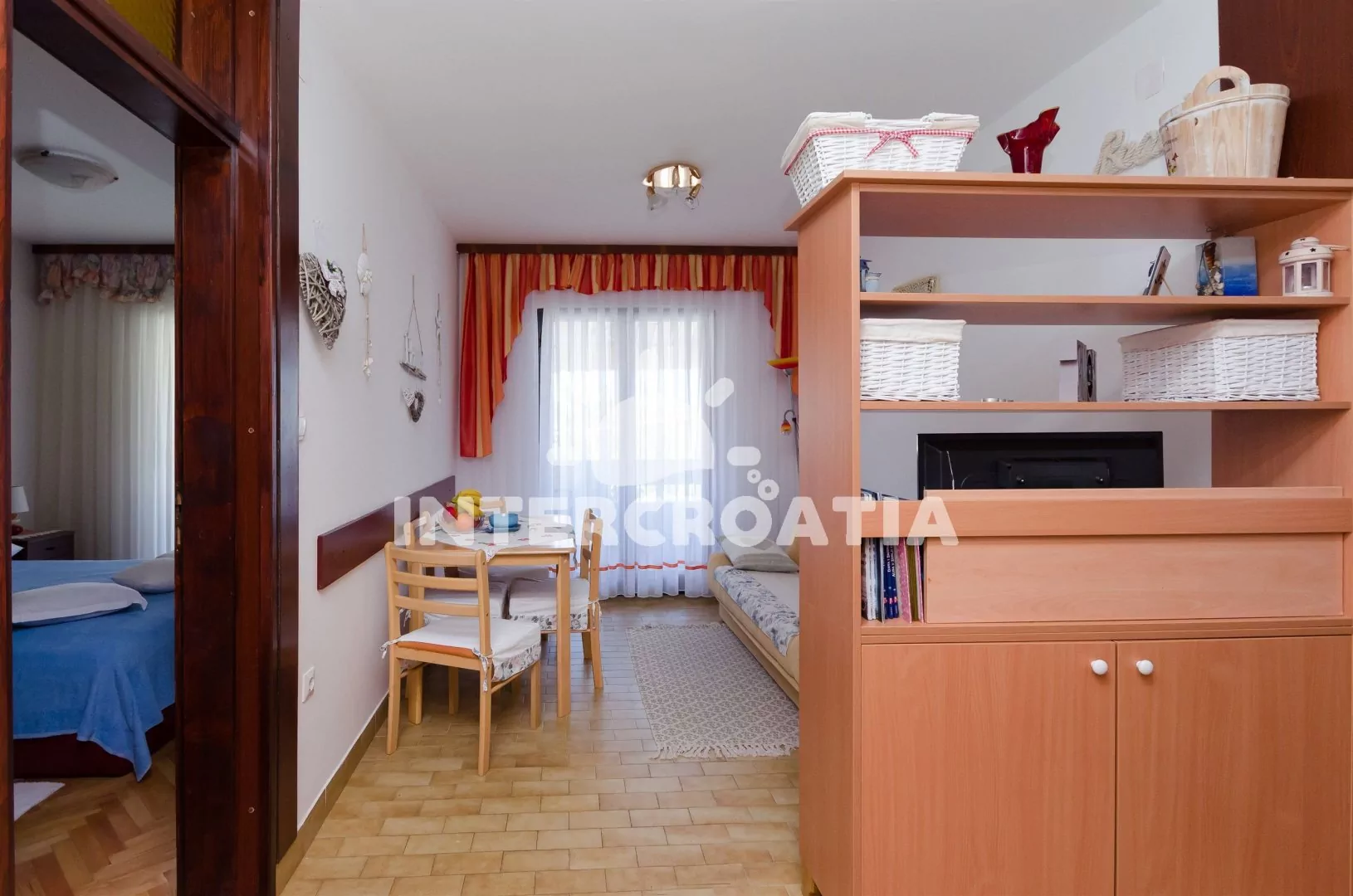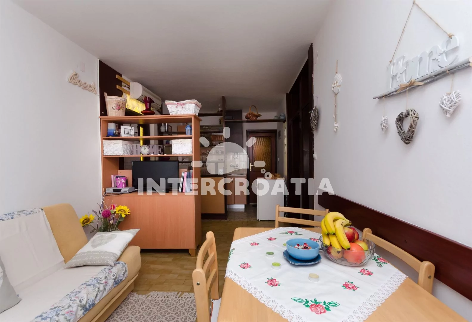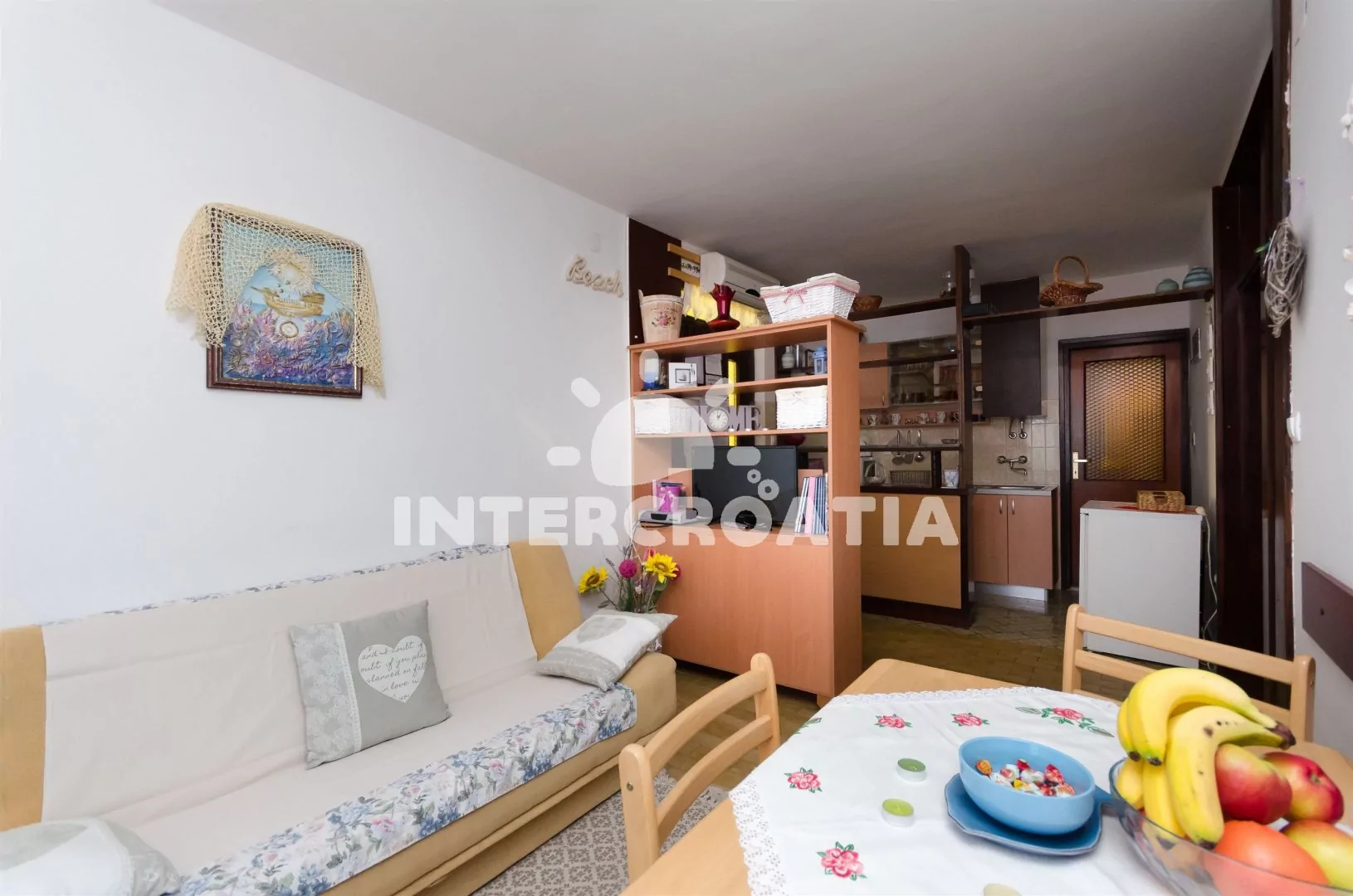 Apartmán umístěný ve zvýšeném přízemí, s terasou a výhledem do klidné ulice je vhodný pro 4 až 5 osob. Obývací pokoj je spojený s kuchyní. Kuchyňská linka je vybavena s varnou deskou, mikrovlnnou…