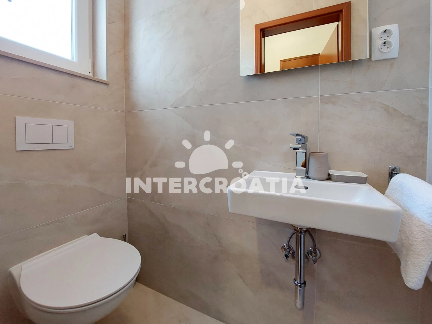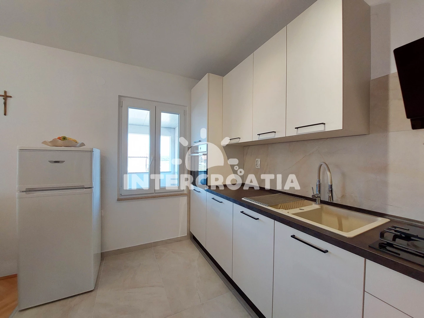 Vzdálenosti: Moře 400 m, pláž 500 m (betonové desky), restaurace 100 m, bar 100 m, supermarket 100 m, směnárna 100 m, potápění 200 m, ambulance 300 m, veřejná doprava 400 m, muzeum 500 m, pošta 500 m, banka 500 m, centrum 500 m, půjčovna motorových člunů 500 m, lékárna 500 m, kotviště pro čluny 500 m, půjčovna kol 500 m, tenisové kurty 800 m, mini golf 800 m, marina 800 m, čerpací stanice 4 km, diskotéka 4 km, trajekt (Valbiska (Krk)) 20 km, letiště (Rijeka) 30 km,