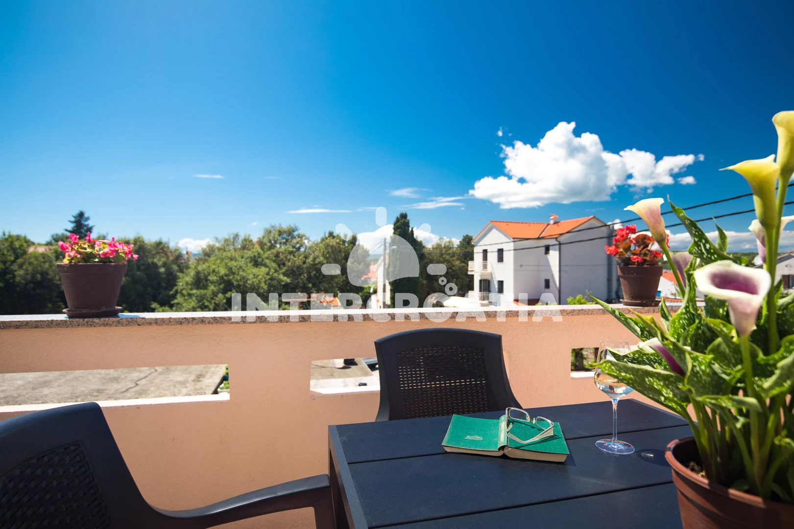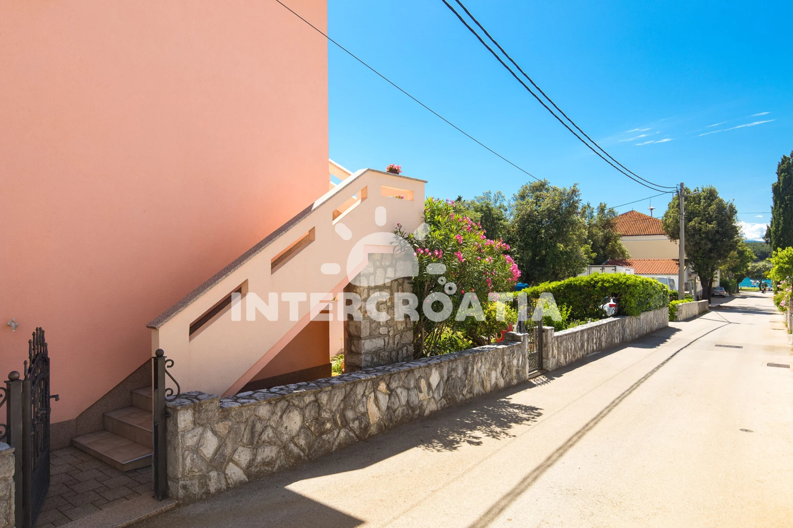 Vzdálenosti: Moře 150 m, pláž 300 m (oblázková a betonové desky), restaurace 20 m, centrum 50 m, supermarket 70 m, bar 100 m, lékárna 100 m, kotviště pro čluny 150 m, půjčovna kol 200 m, směnárna 200 m, banka 220 m, ambulance 250 m, pošta 250 m, diskotéka 250 m, půjčovna motorových člunů 250 m, veřejná doprava 250 m, potápění 250 m, muzeum 500 m, tenisové kurty 1 km, marina 1 km, čerpací stanice 6 km, letiště (Rijeka) 20 km, trajekt (Valbiska (Krk)) 25 km,