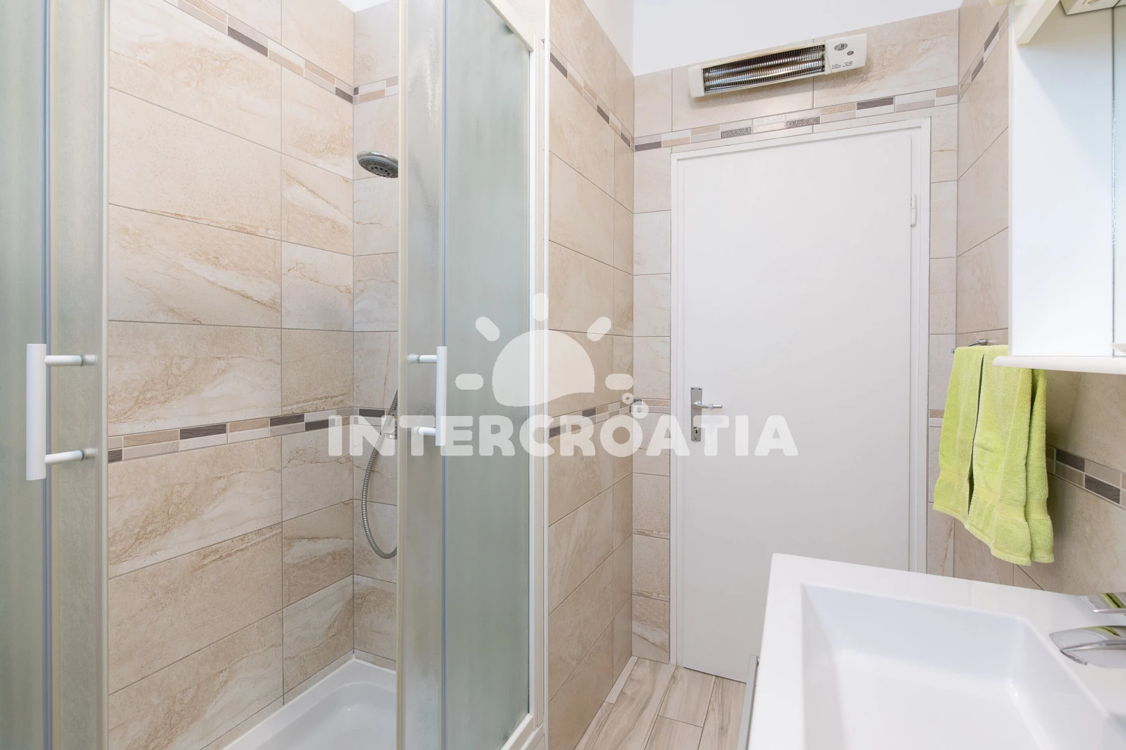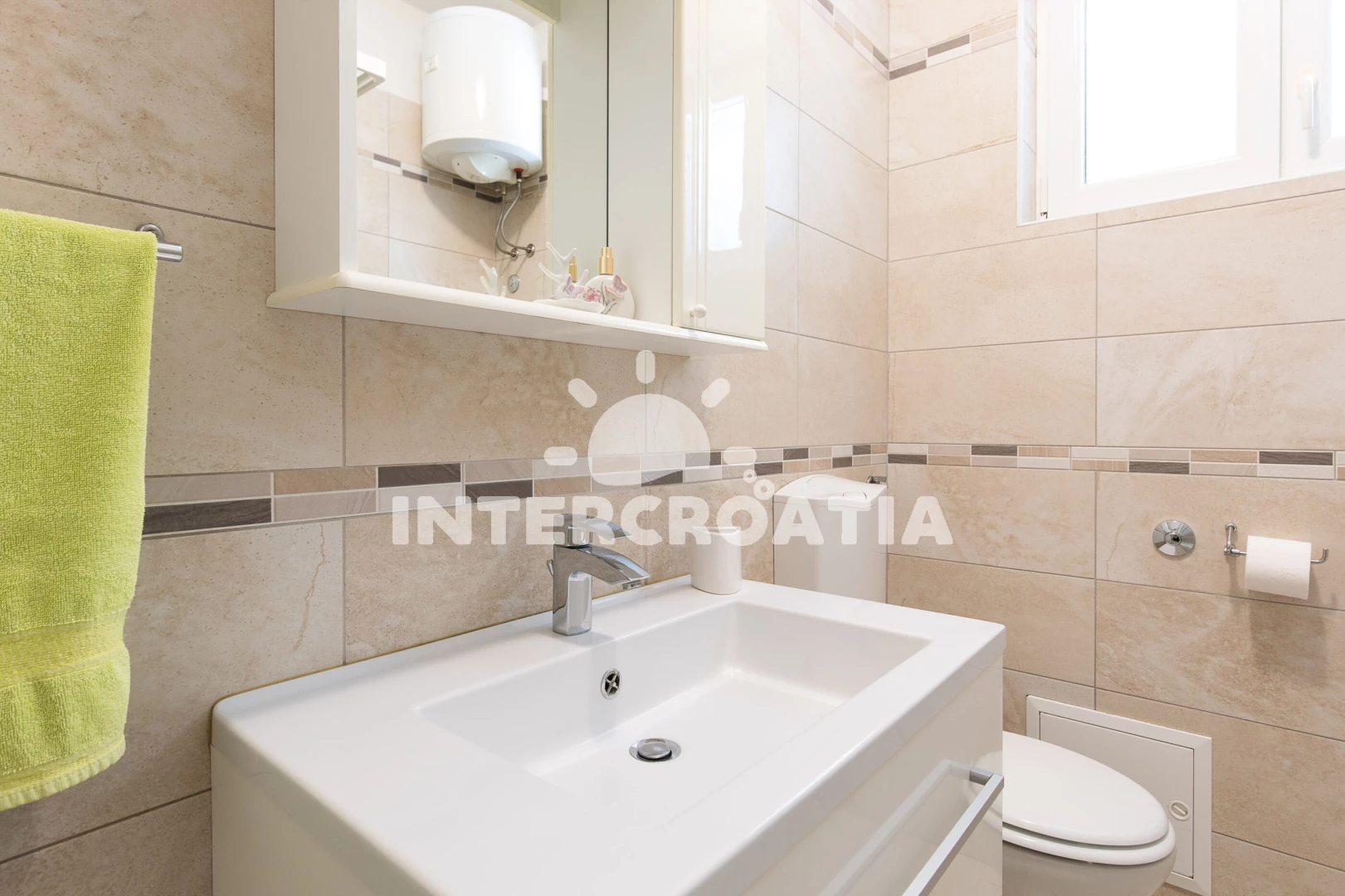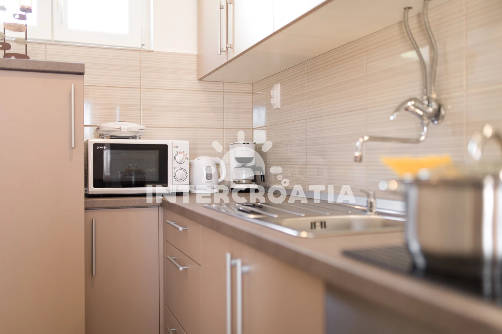Apartmán se nachází 300 m od moře a pláže. Pláž je oblázková a betonové desky. U objektu je k dispozici společná zahrada s posezením a grilem. Parkování je před domem.