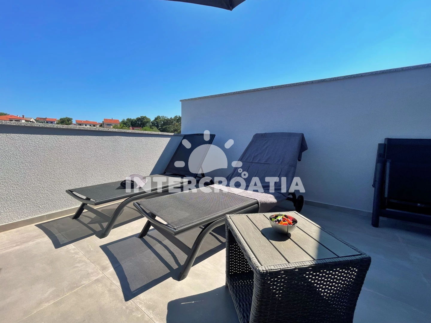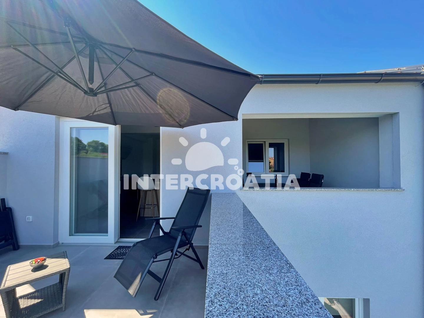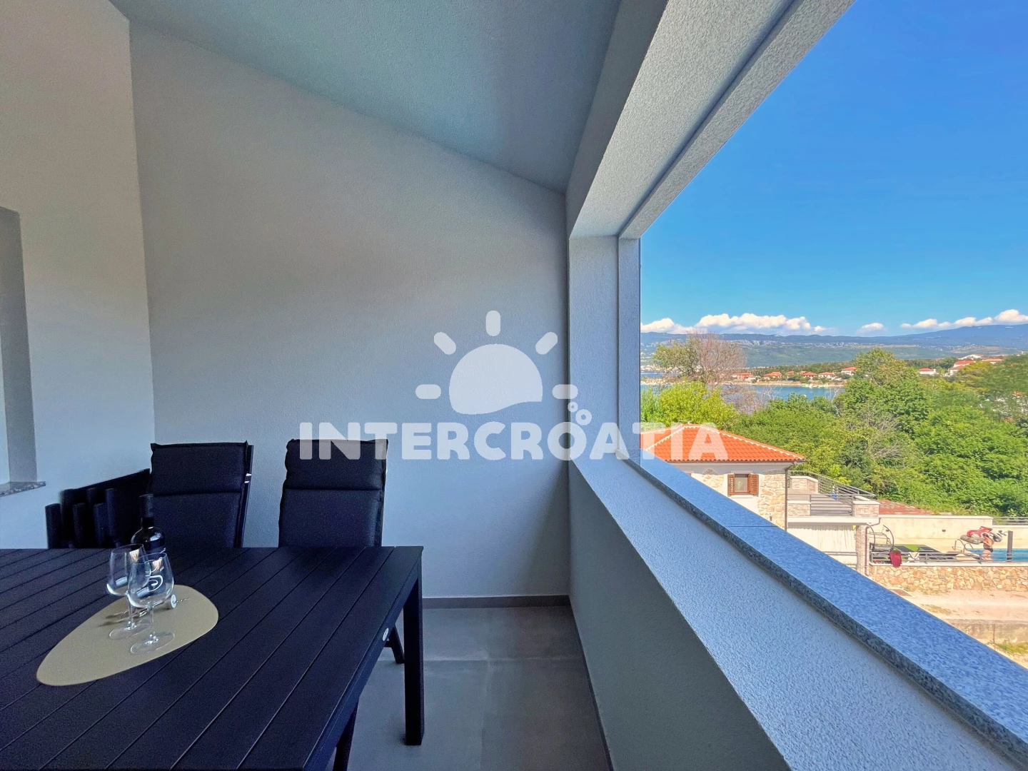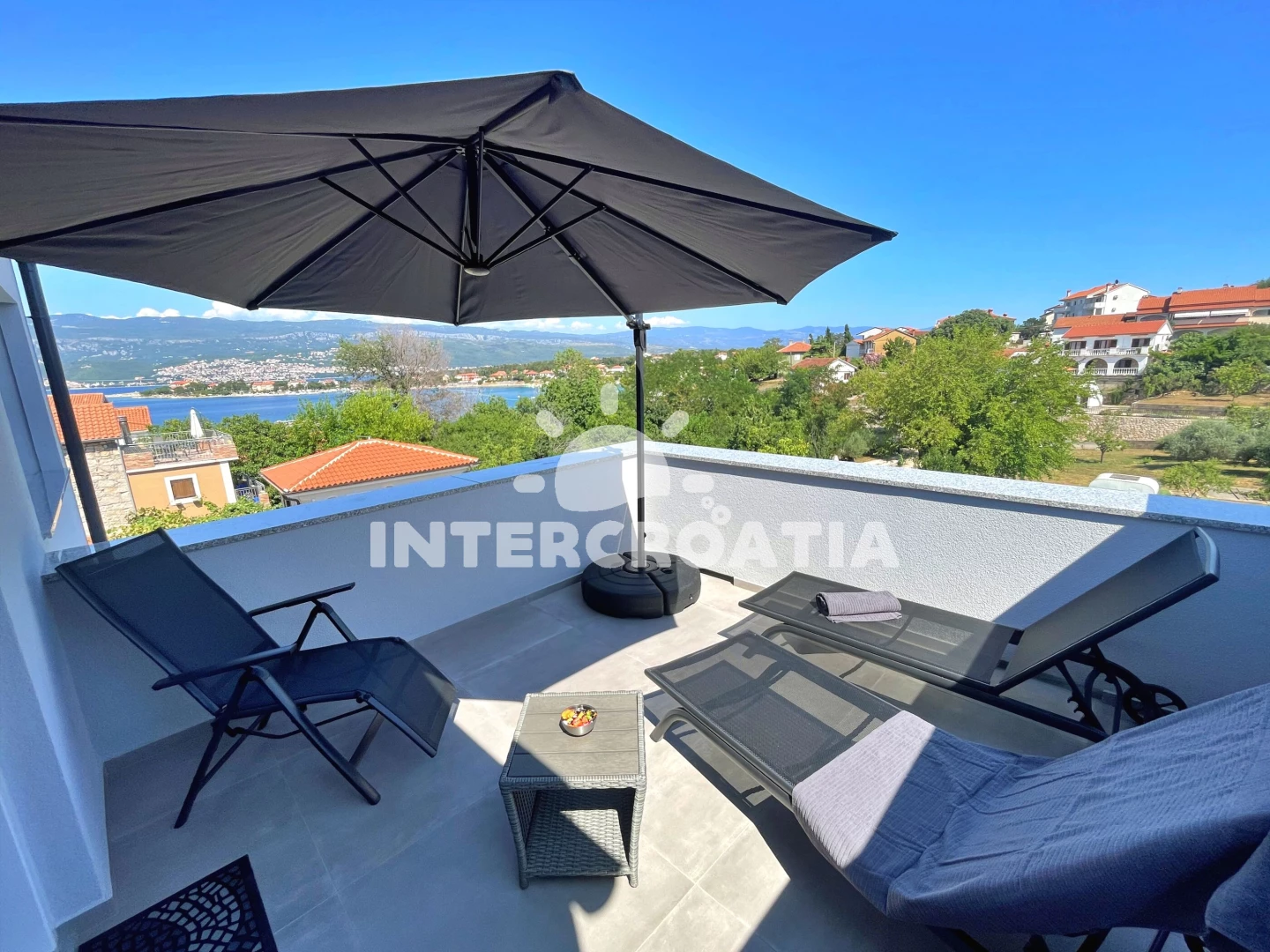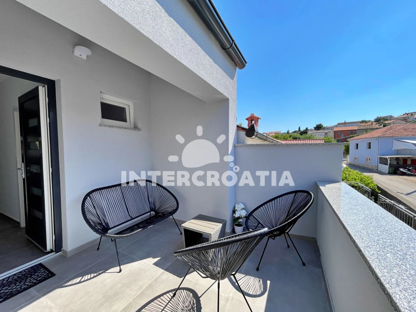 Apartmán (84 m2) s terasou, s balkonem. Nachází se v 1. patře objektu. Apartmán má 2 ložnice a je vhodný pro až 6 osob. Kuchyňská linka je vybavena varnou deskou, troubou, toustovačem, kávovarem, myčkou na nádobí, mikrovlnnou troubou, rychlovarnou konvicí, nádobím, lednicí, mrazákem. V obývací místnosti je rozložitelná pohovka (extra lůžko pro 2 osoby). K dispozici televize, žehlička. První ložnice s dvoulůžkem. Druhá ložnice se 2 jednolůžky. Koupelna se sprchovým koutem, umyvadlem, fénem a WC. Dále samostatné WC.