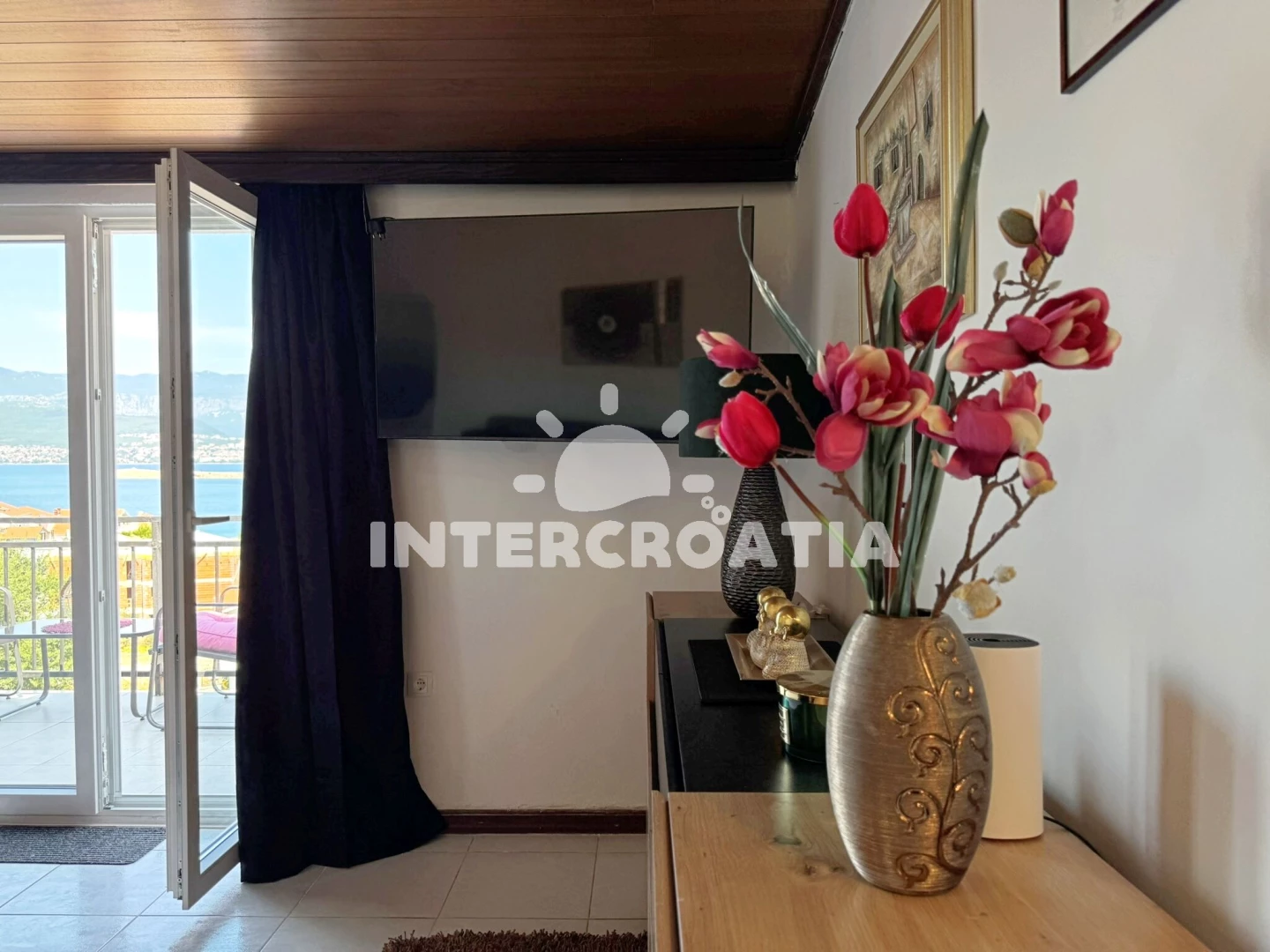 Vzdálenosti: Moře 200 m, pláž 300 m (betonové desky), ambulance 20 m, směnárna 30 m, pošta 30 m, bar 200 m, veřejná doprava 200 m, supermarket 210 m, restaurace 220 m, centrum 220 m, lékárna 350 m, potápění 1,3 km, muzeum 6 km, diskotéka 14 km, čerpací stanice 14 km, banka 16,3 km, letiště (Rijeka) 18,2 km, mini golf 18,6 km, trajekt (Valbiska (Krk)) 26,5 km,