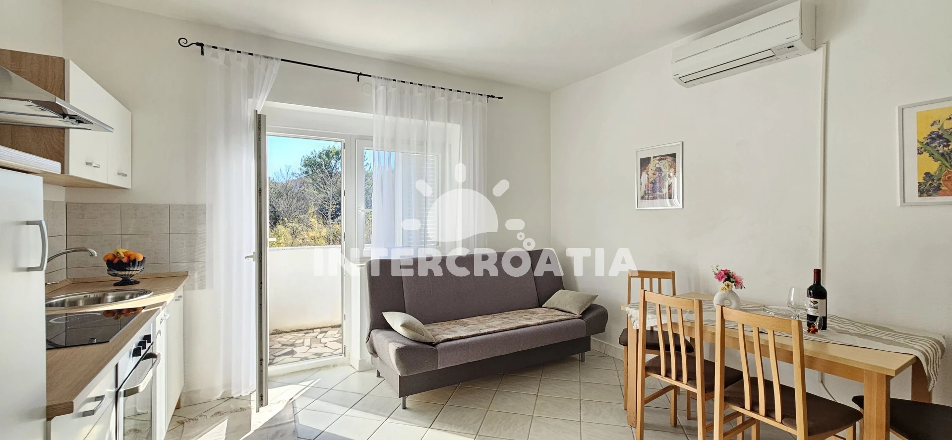 Vzdálenosti: pláž 450 m (písčitá, oblázková a skalnatá), supermarket 40 m, centrum 300 m, lékárna 300 m, pošta 300 m, restaurace 300 m, letiště (Rijeka) 10 km,