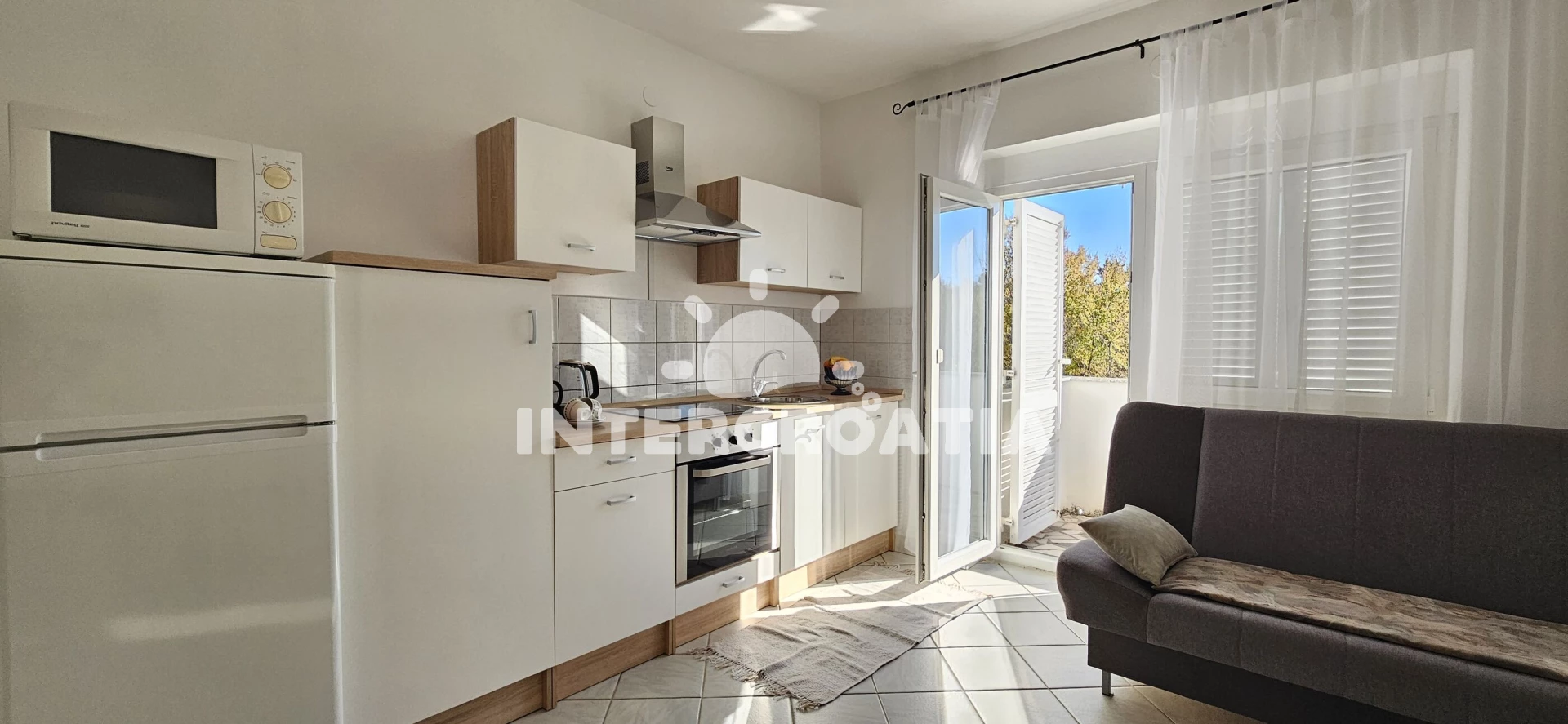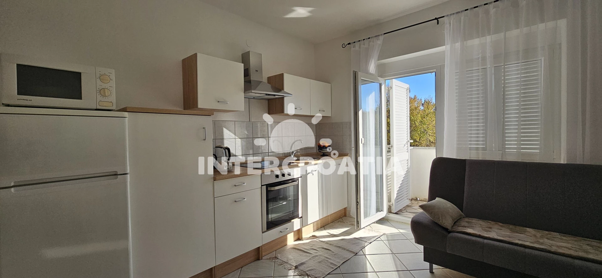 Vzdálenosti: pláž 450 m (písčitá, oblázková a skalnatá), supermarket 40 m, centrum 300 m, lékárna 300 m, pošta 300 m, restaurace 300 m, letiště (Rijeka) 10 km,