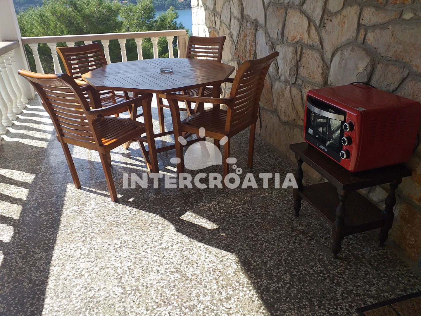 Apartman je smješten prvi red do mora. Kad dođete s trajekta treba vam 2 minute autom. Do apartmana i do plaže pred kućom ima puno stepenica, pa nije za osobe koje ne mogu puno hodati. More čisto kristalno. Apartman je odlično opremljen; u kuhinji ima sve od posuđa i pomagala što bi vam moglo zatrebati, i više. Kreveti su jako udobni. Pogled s terase i balkončića prekrasan. Smještaj je odličan kao baza za điranje po otoku, ali i samo uživanje na terasi. Ipak, preporučujem obići otok.