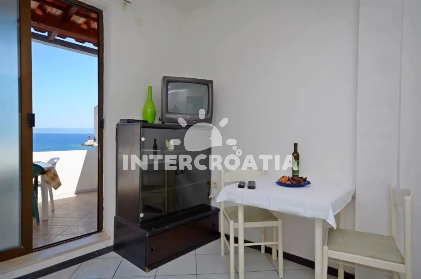 Apartmán se nachází 10 m od moře a pláže. Pláž je betonové desky.