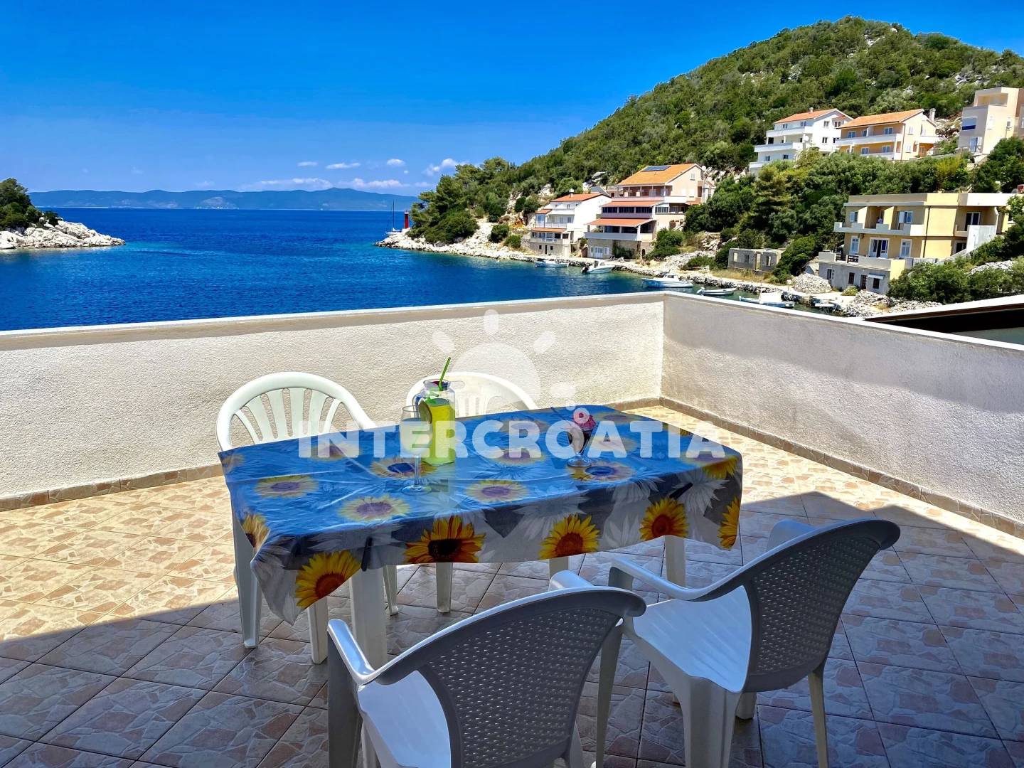 Vzdálenosti: Moře 5 m, centrum 2 m, pláž 5 m (betonové desky), restaurace 2 m, bar 2 m, kotviště pro čluny 10 m, marina 20 m, půjčovna motorových člunů 70 m, potápění 70 m, půjčovna kol 70 m, diskotéka 2,5 km, supermarket 2,5 km, lékárna 2,5 km, ambulance 2,5 km, veřejná doprava 2,5 km, pošta 2,5 km, banka 2,5 km, směnárna 2,5 km, muzeum 2,5 km, trajekt (Ubli) 12 km, čerpací stanice 12 km, letiště (Split) 153 km,