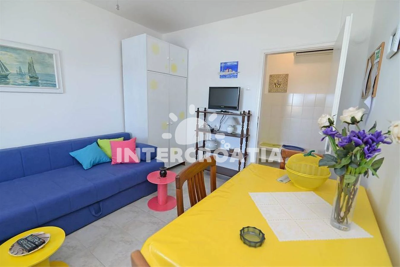 Apartmán (35 m2) s terasou, a výhledem na moře. Nachází se ve zvýšeném přízemí objektu. Apartmán má 1 ložnici a je vhodný pro až 2 osoby. Kuchyňská linka je vybavena varnou deskou, troubou, kávovarem, rychlovarnou konvicí, nádobím, lednicí, mrazákem. K dispozici televize se satelitním programem. Koupelna se sprchovým koutem, umyvadlem, WC.