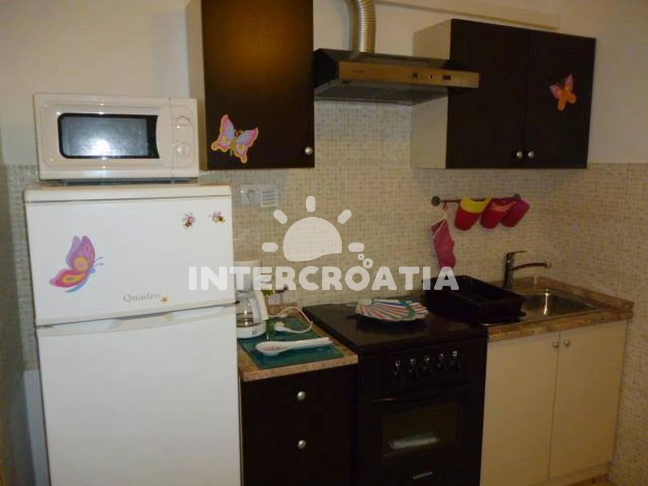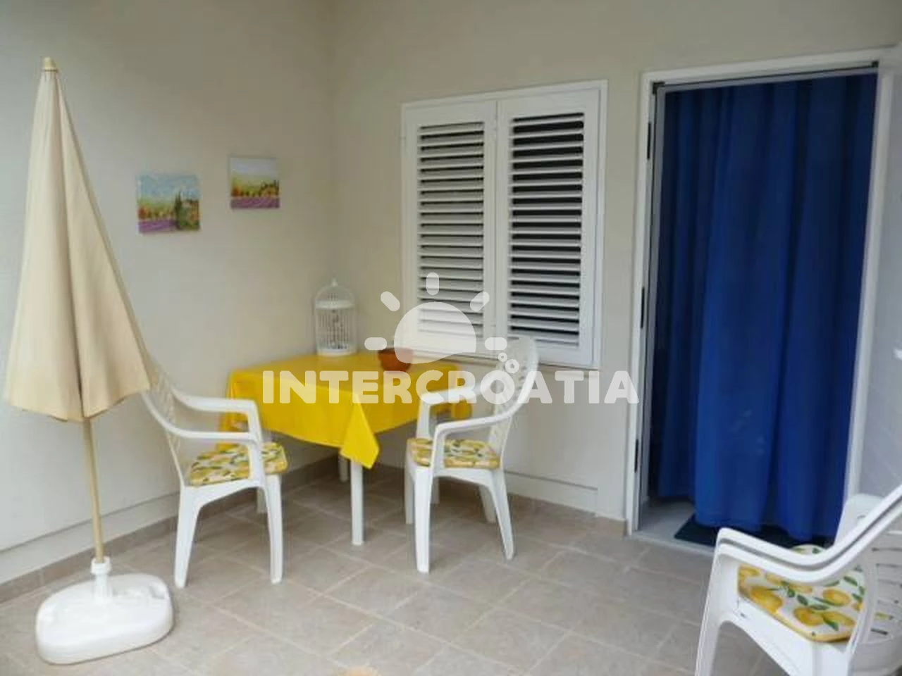 Apartmán (30 m2) s terasou, a výhledem na moře. Nachází se ve zvýšeném přízemí objektu. Apartmán má 1 ložnici a je vhodný pro až 2 osoby. Kuchyňská linka je vybavena varnou deskou, troubou, kávovarem…